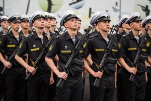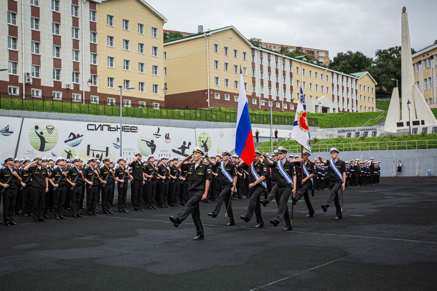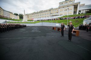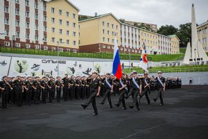 После принятия воинской присяги курсанты прошли торжественным маршем по плацу.