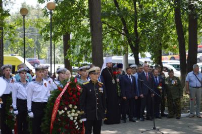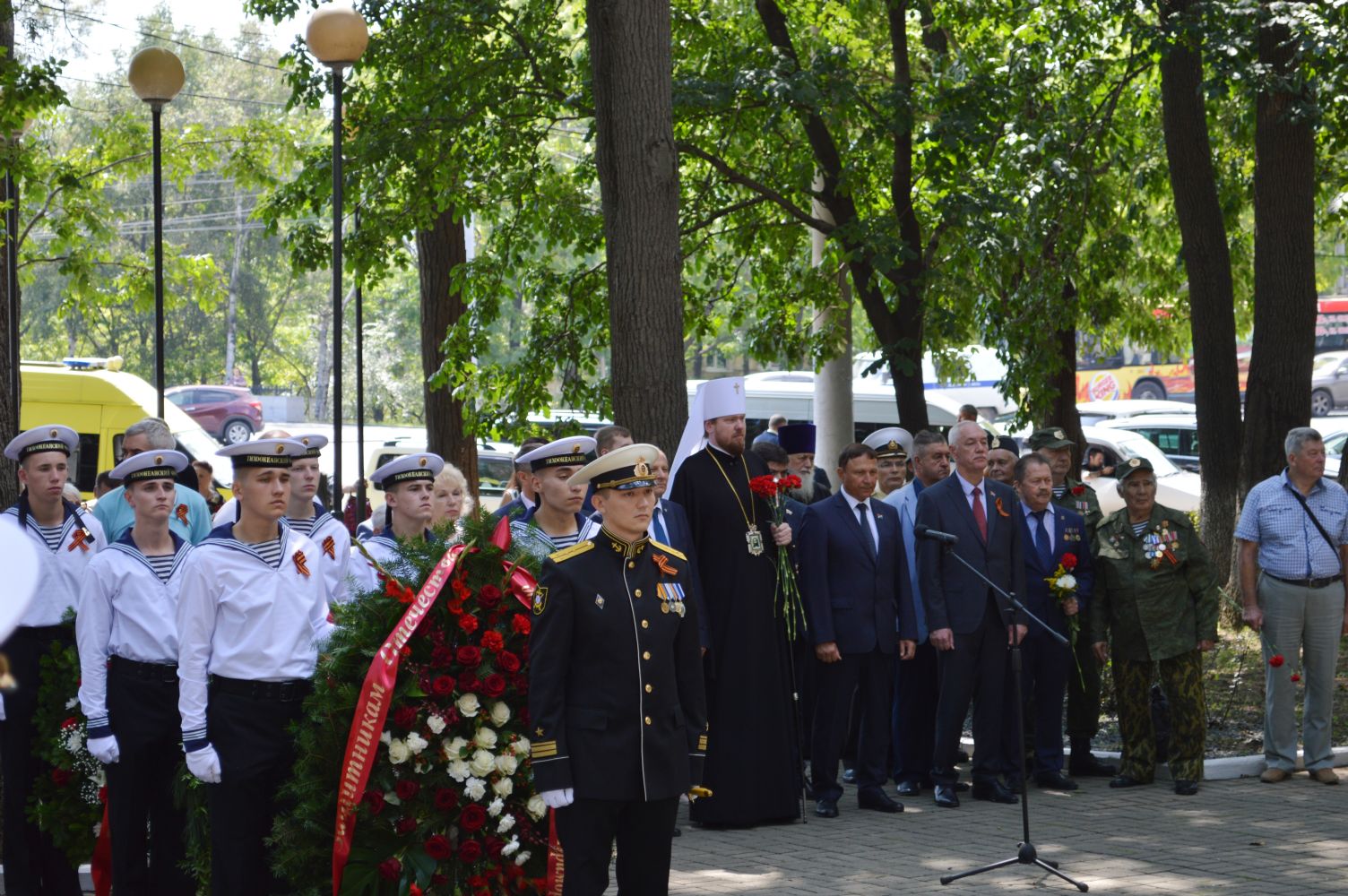 Участники церемонии почтили память погибших на полях сражений минутой молчания.