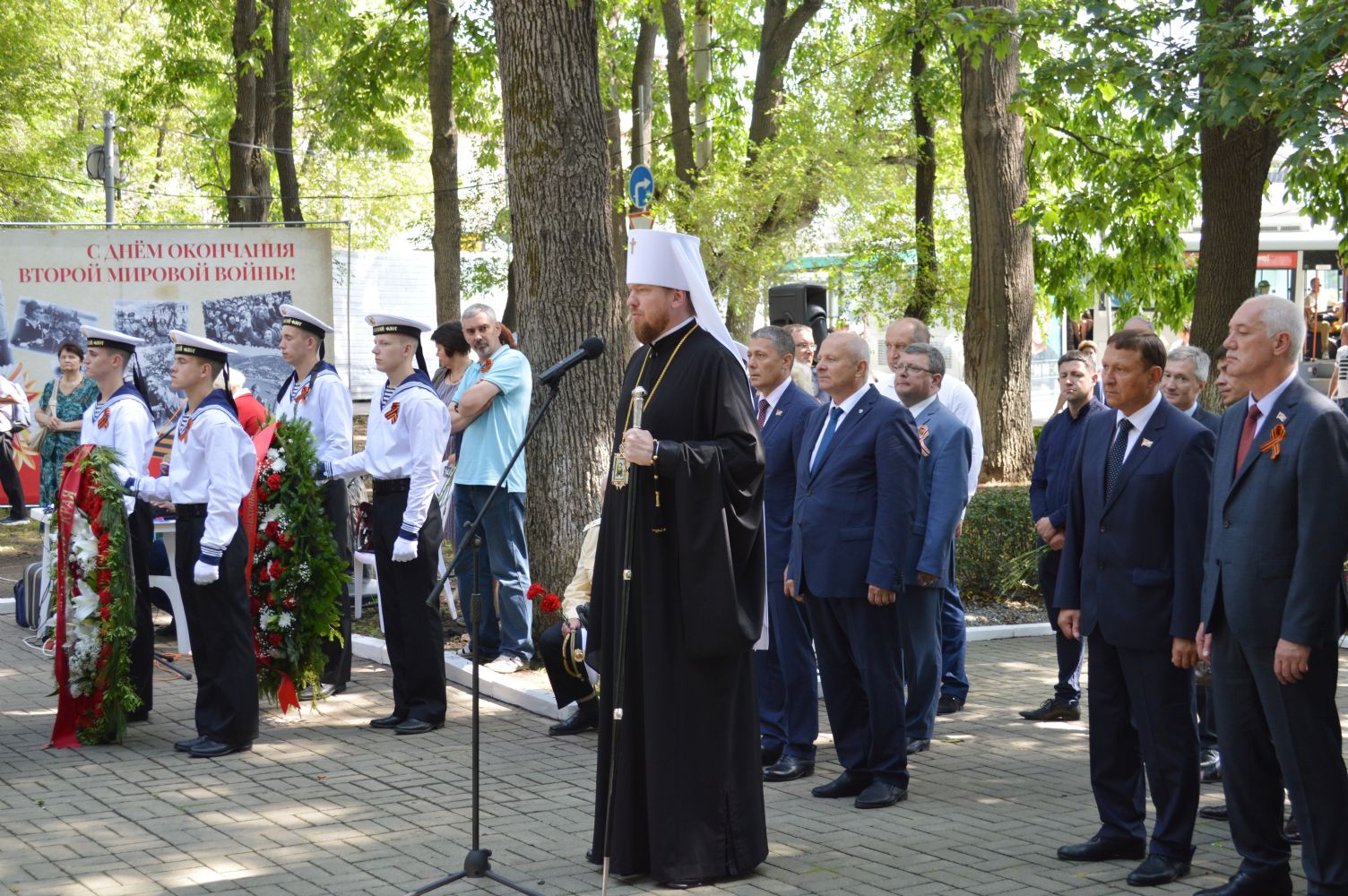 Выступая перед собравшимися, митрополит Владимир призвал молиться о упокоении воинов и помнить о подвиге тех, кто отдал свою жизнь на поле брани за освобождение мира от фашизма, и о Великой Победе советского народа во Второй мировой войне: «Сегодня Россия является хранительницей подлинной истории Второй мировой войны, и какие бы не предпринимались попытки предложить альтернативные версии тех страшных лет, мы знаем, что настанет тот момент, когда правда будет востребована и другими государствами и народами. Мне хочется пожелать всем нам помощи Божией, а нашему родному Отечеству мира и всяческого процветания. Пусть Господь всех нас хранит в мире, единстве, согласии и, конечно же, в добром здравии!»