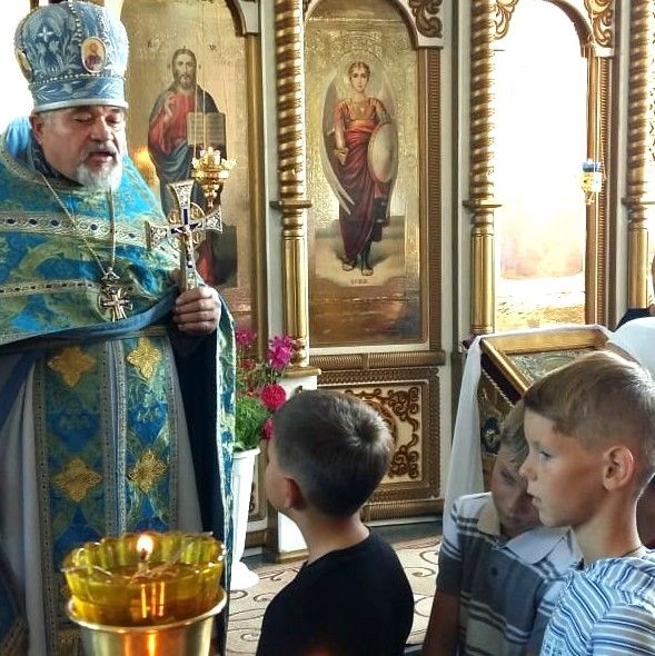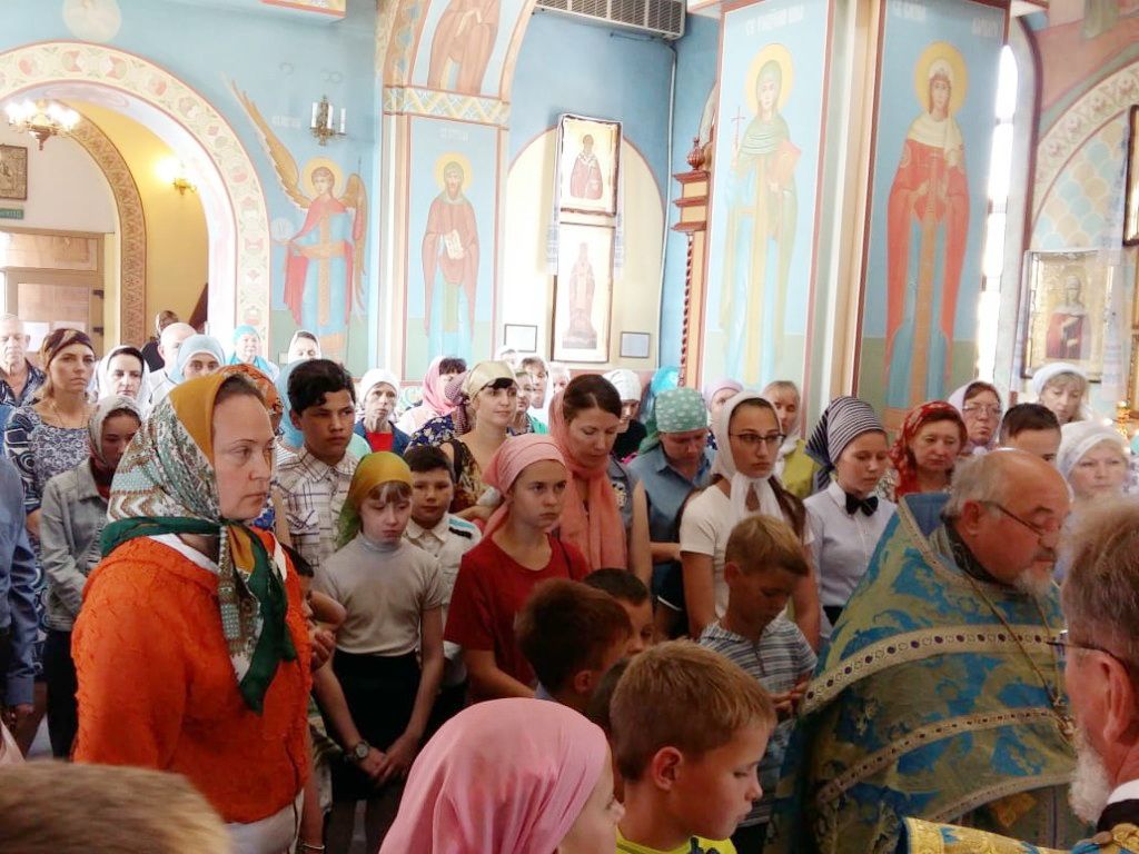 На службу перед началом нового учебного года в храм пришли многие жители села Спасское с детьми всех возрастов.