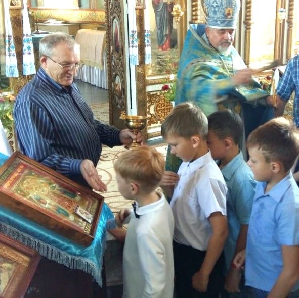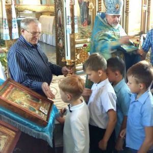 Село Спасское. Молебен на начало учебного года отслужил настоятель храма Вознесения Господня митрофорный протоиерей Владимир Капитанюк.