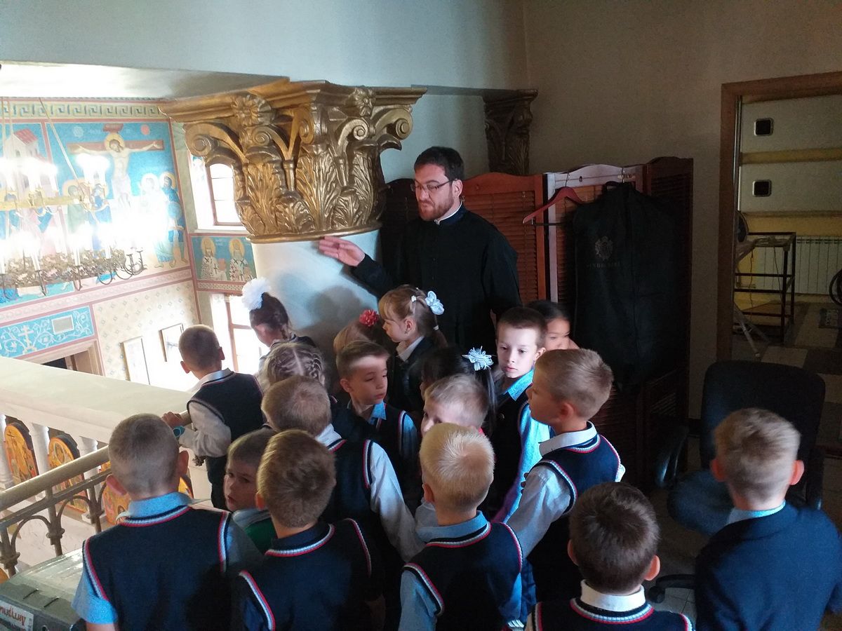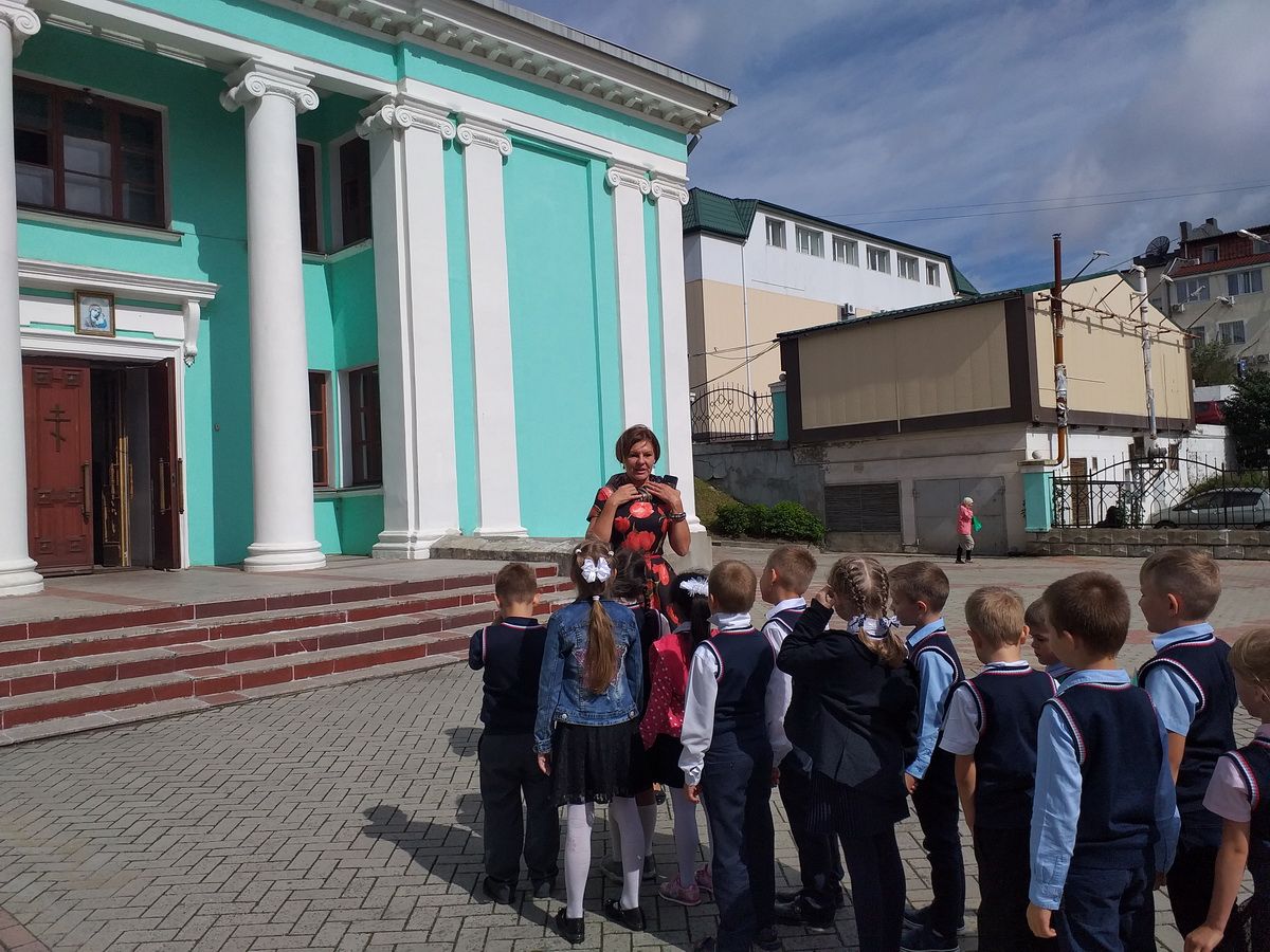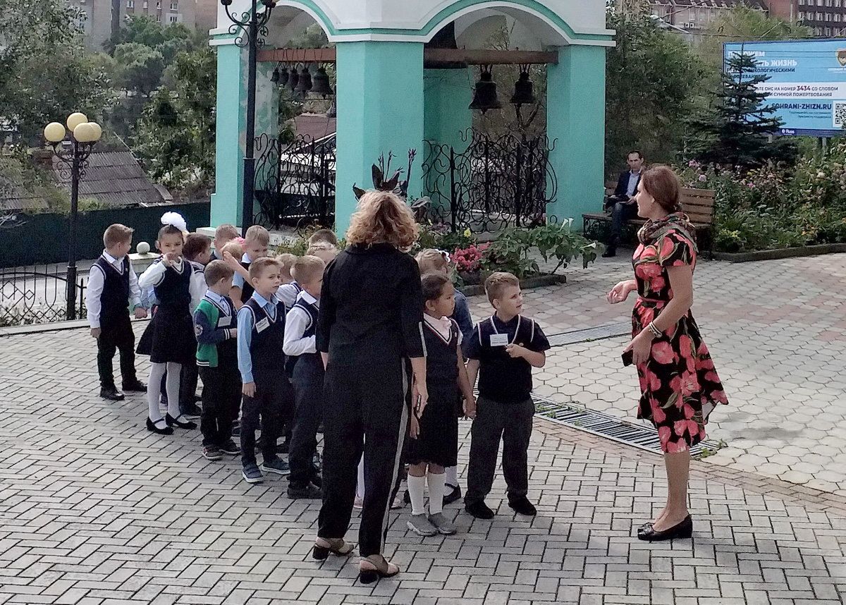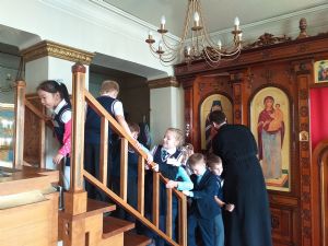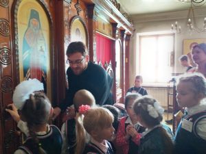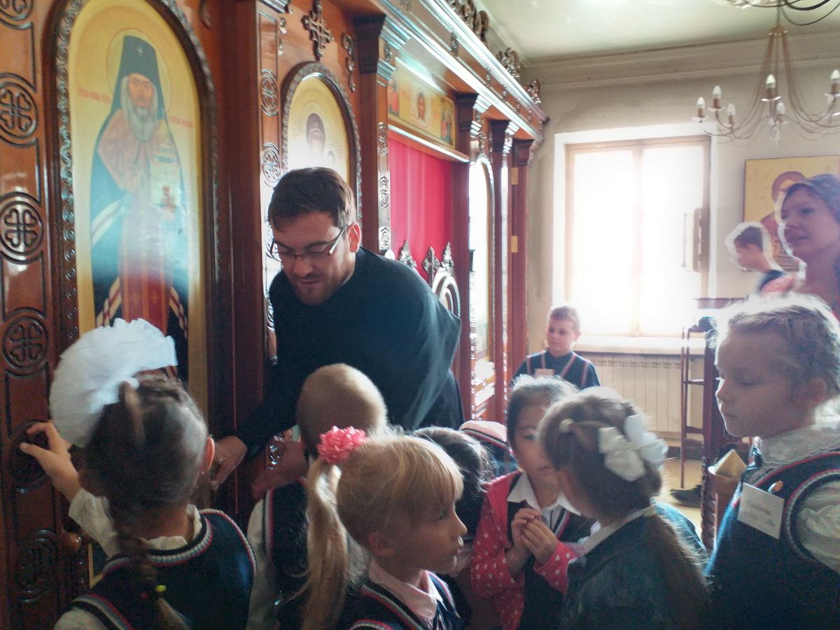Владивосток. По благословению настоятеля храма Казанской иконы Пресвятой Богородицы протоиерея Ростислава Мороза директор воскресной школы Наталья Форикова организовала экскурсию в храм для учеников первого класса школы №6.