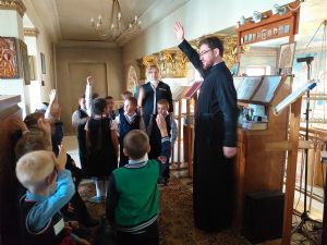 Поводом для экскурсии стал вопрос «кто такие ангелы?», с которым первоклассники обратились к своему классному руководителю. И учительница решила, что ответ они должны услышать в православном храме.