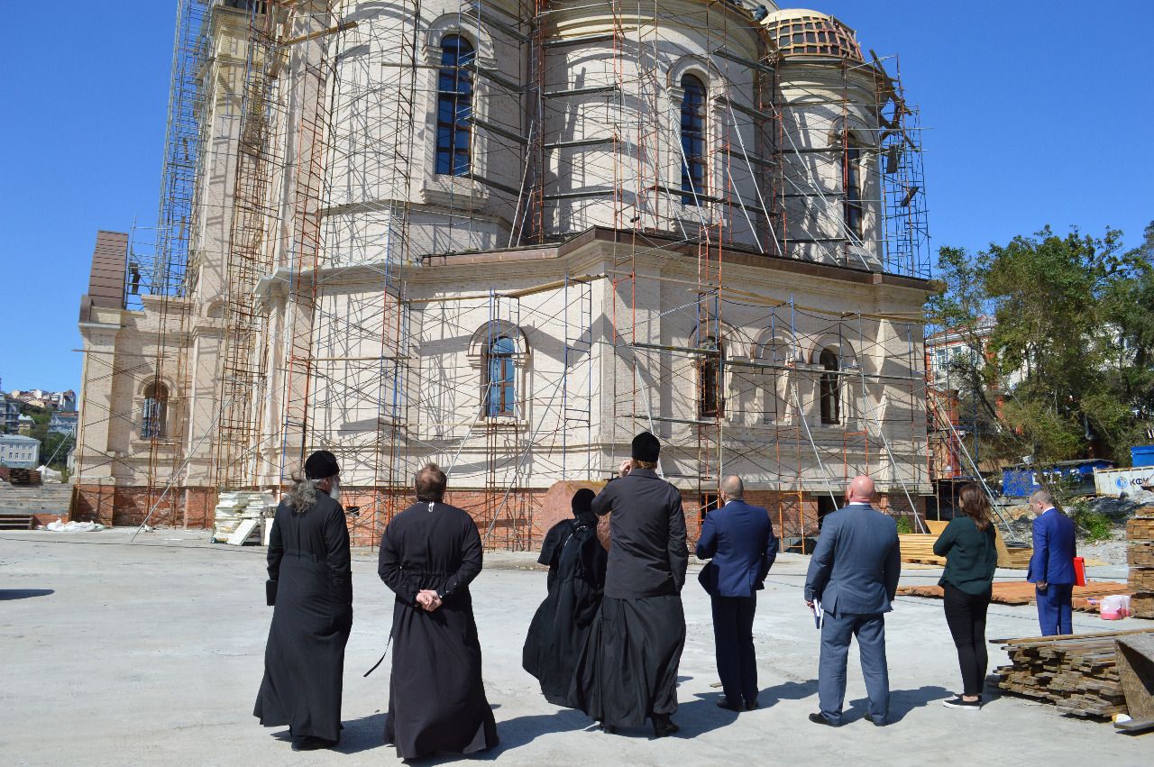 Владивосток. 18 сентября 2019 года митрополит Владивостокский и Приморский Владимир провел расширенное совещание на строительной площадке Спасо-Преображенского кафедрального собора.
