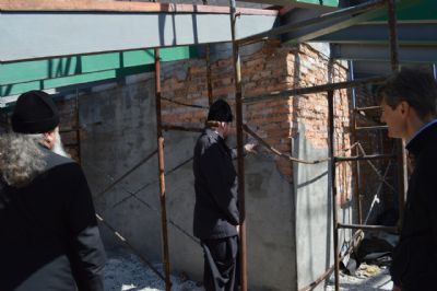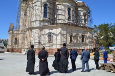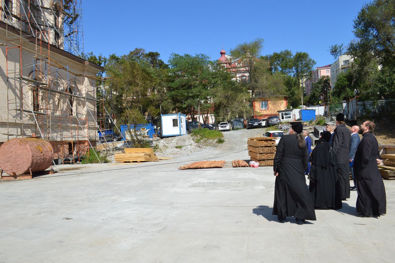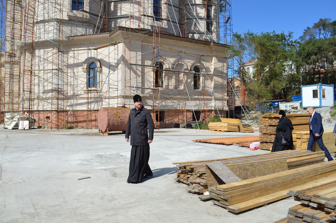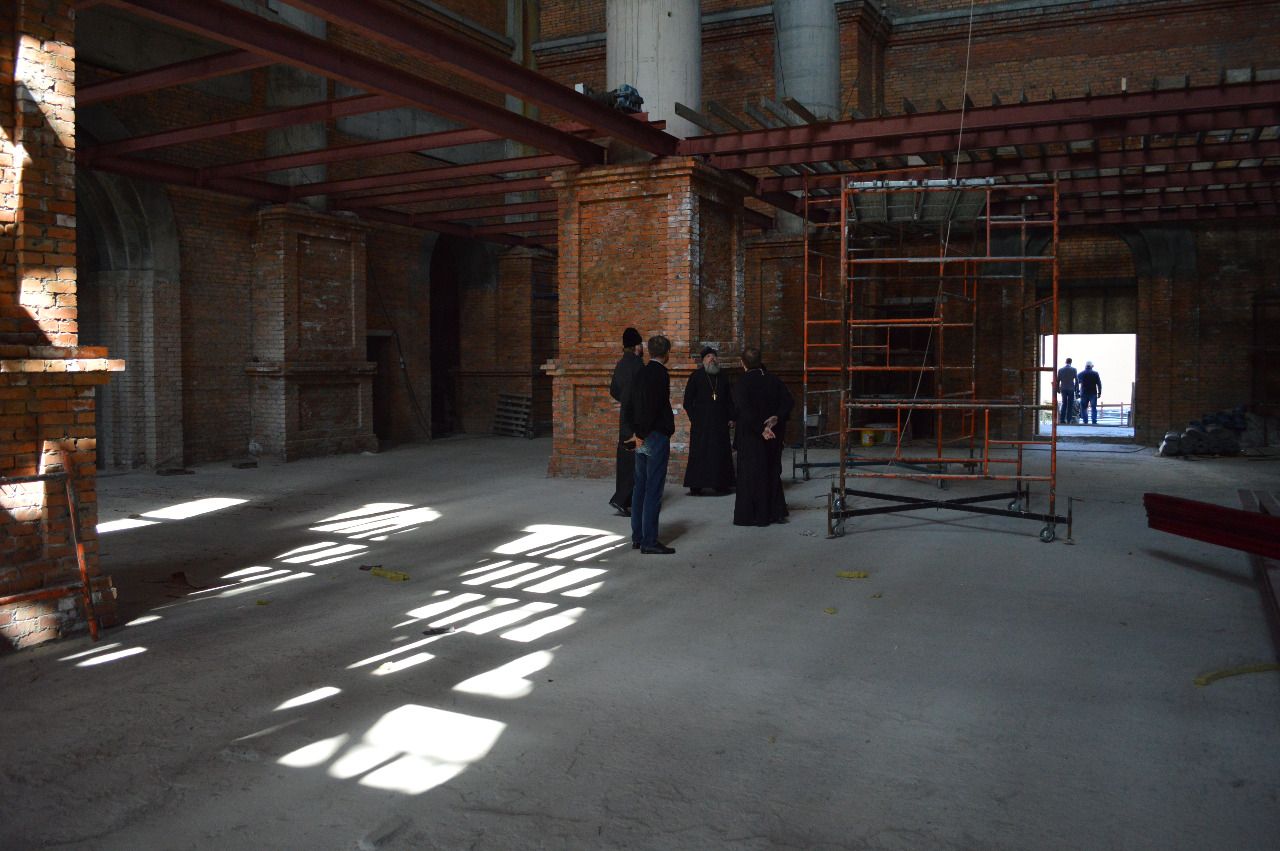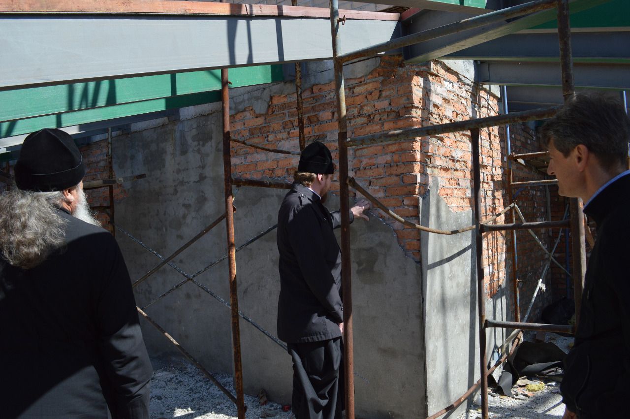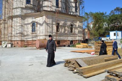 После совещания митрополит Владимир посетил строительную площадку и осмотрел ход строительства собора.