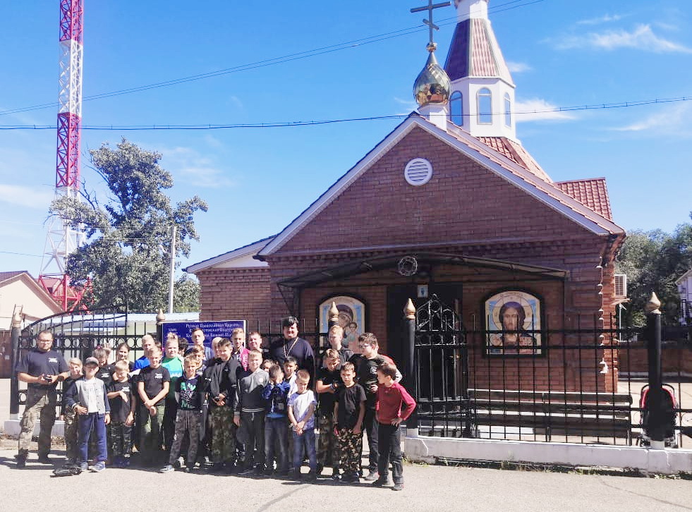 Село Покровка. Настоятель храма Покрова Божией Матери иерей Стефан Цуркан встретился с членами военно-патриотического клуба «Ратник» из города Большой Камень.