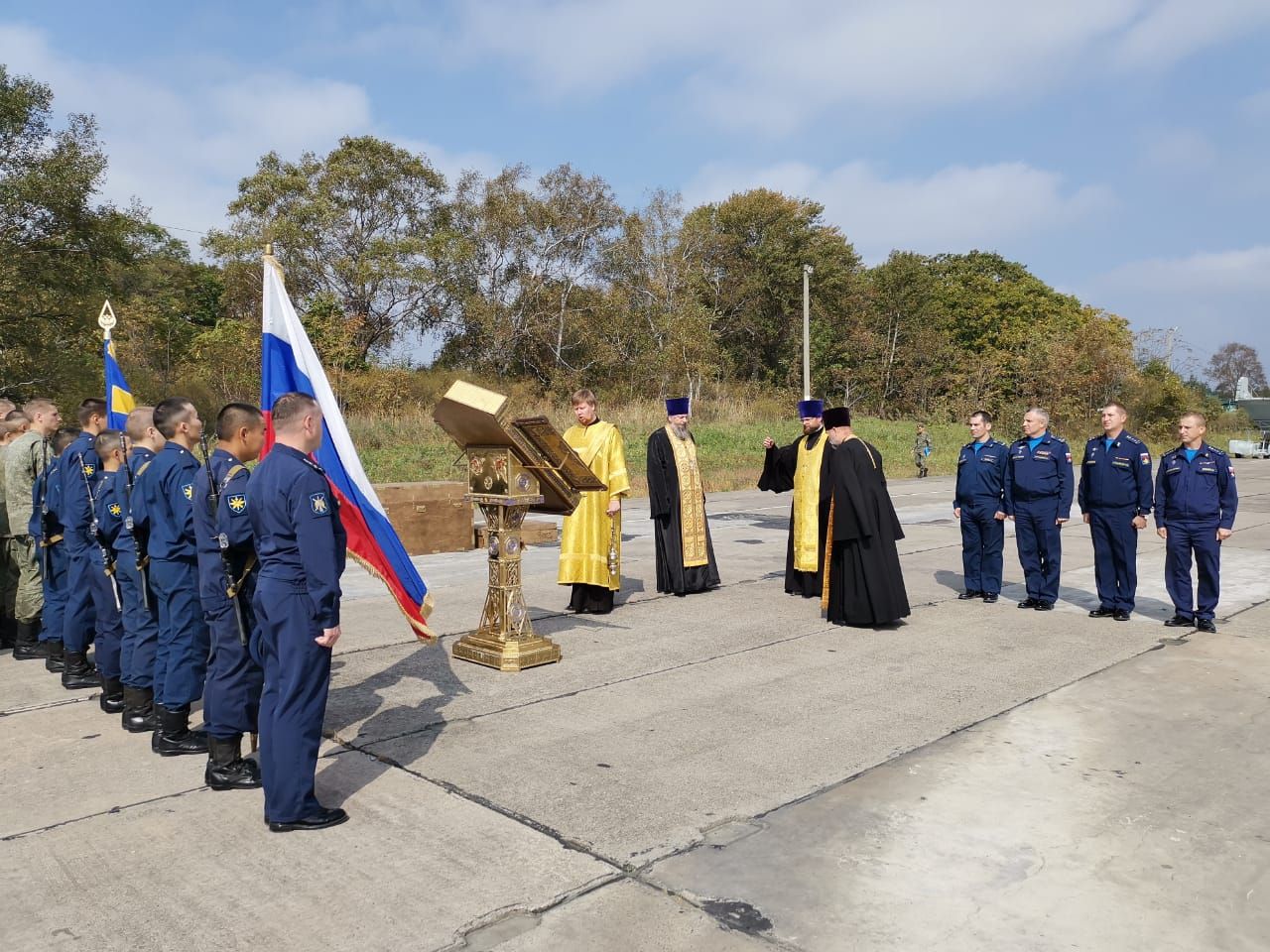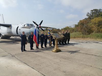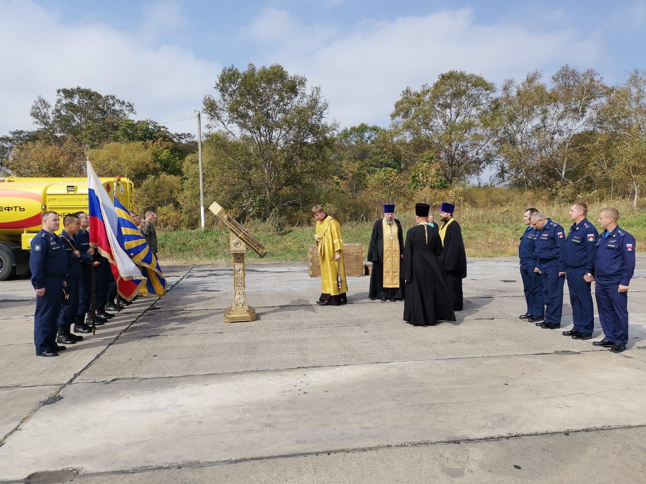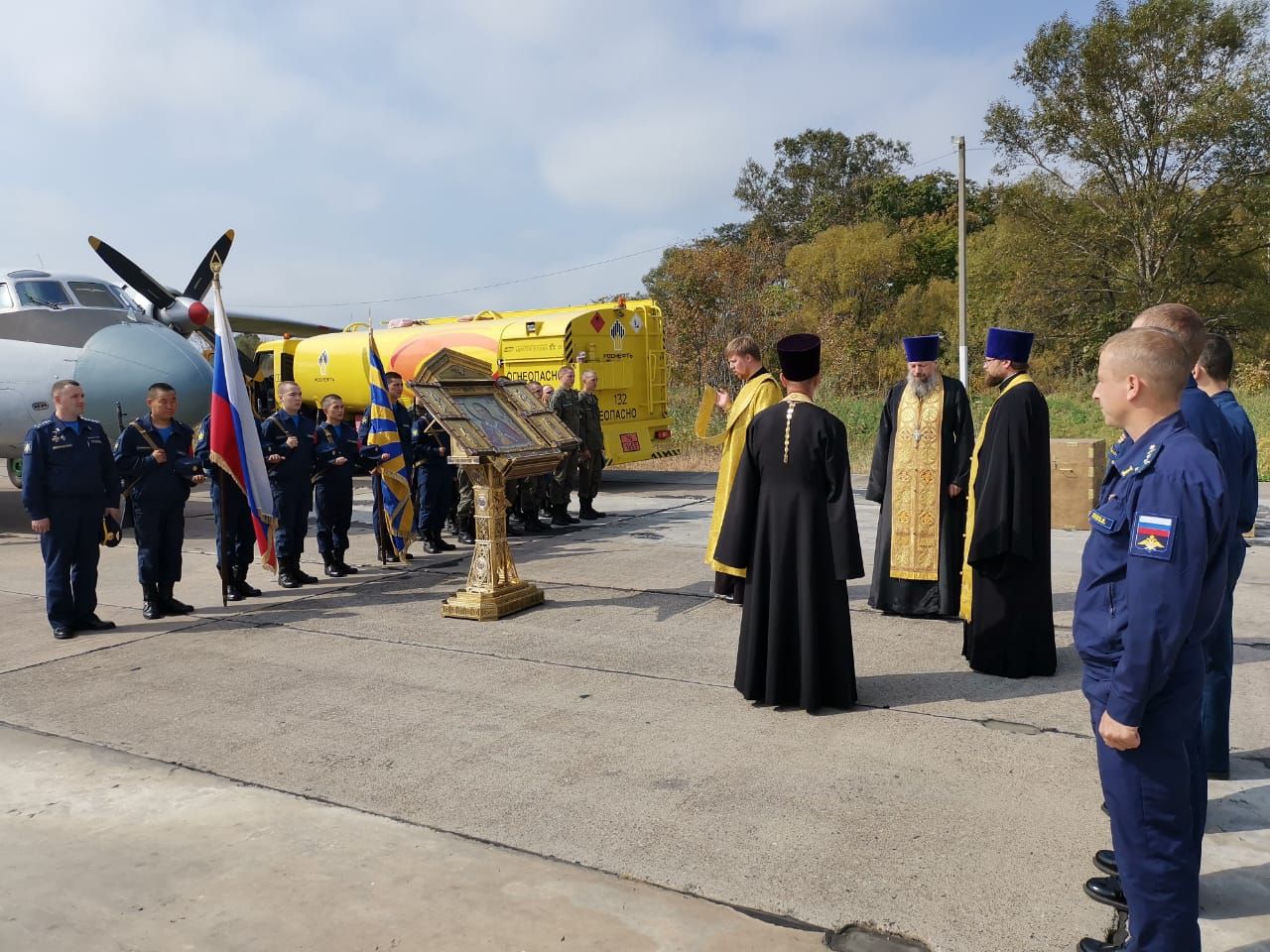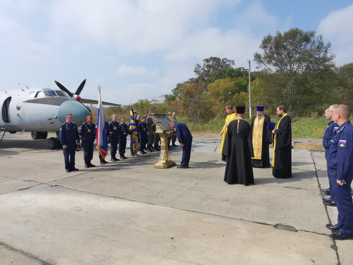 На взлетной полосе аэродрома Димитрий Федорин, благочинный I округа Владивостокской епархии, под пение тропаря пророку Божию Илие встретил икону, прибывшую во Владивостокскую епархию воздушным транспортом по благословению митрополита Владивостокского и Приморского Владимира.