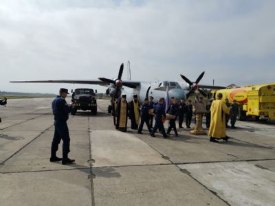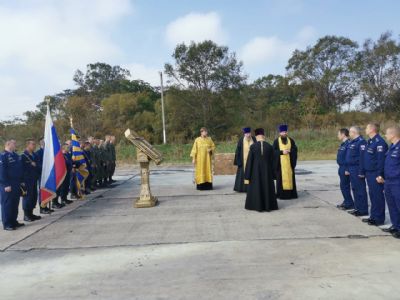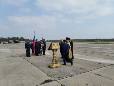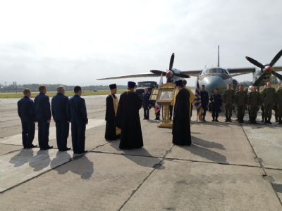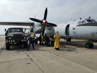 На взлетной полосе протоиерей Димитрий Федорин, протоиерей Сергий Бирюк и иерей Алексий Овчинников совершили молебен пророку Божию Илие.