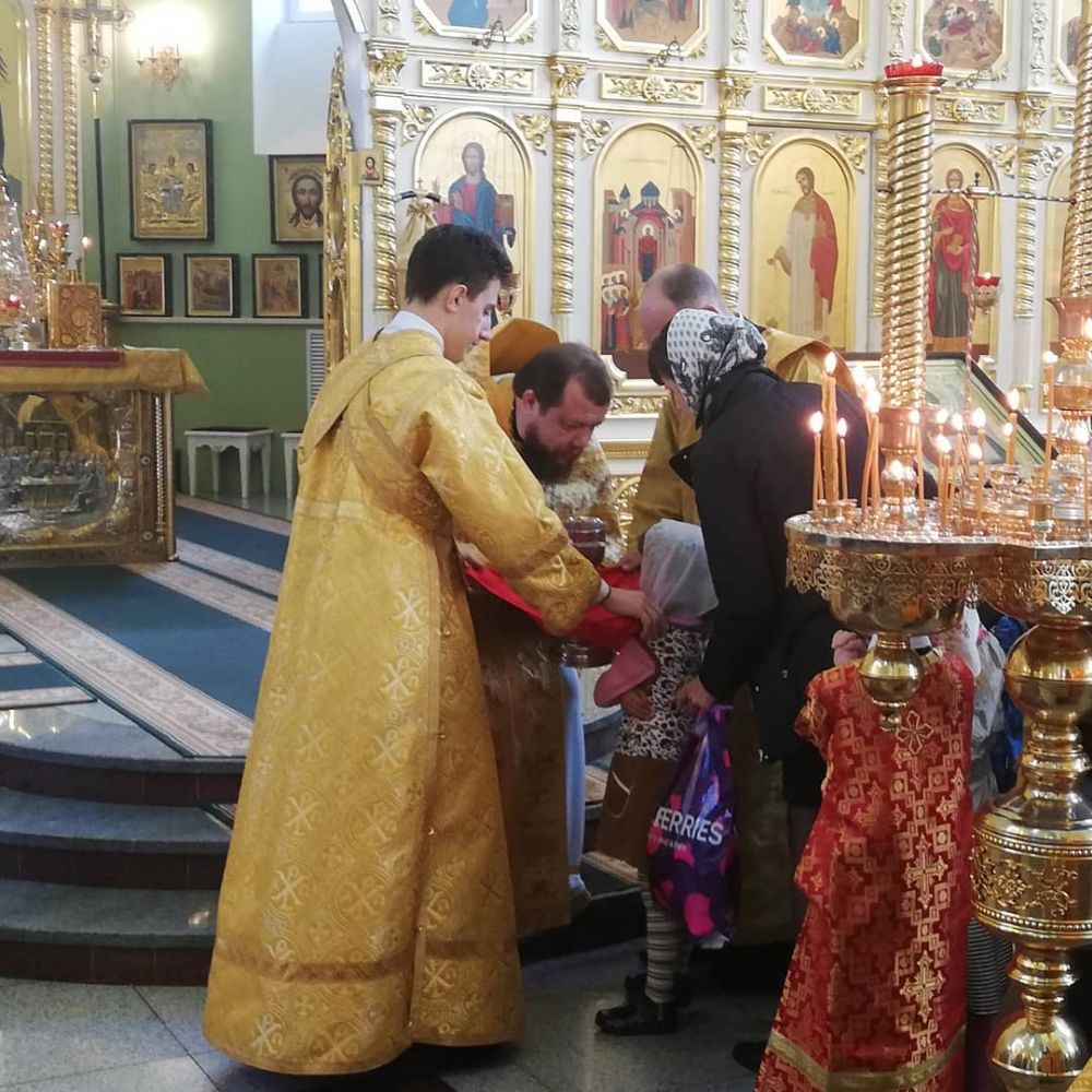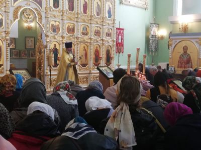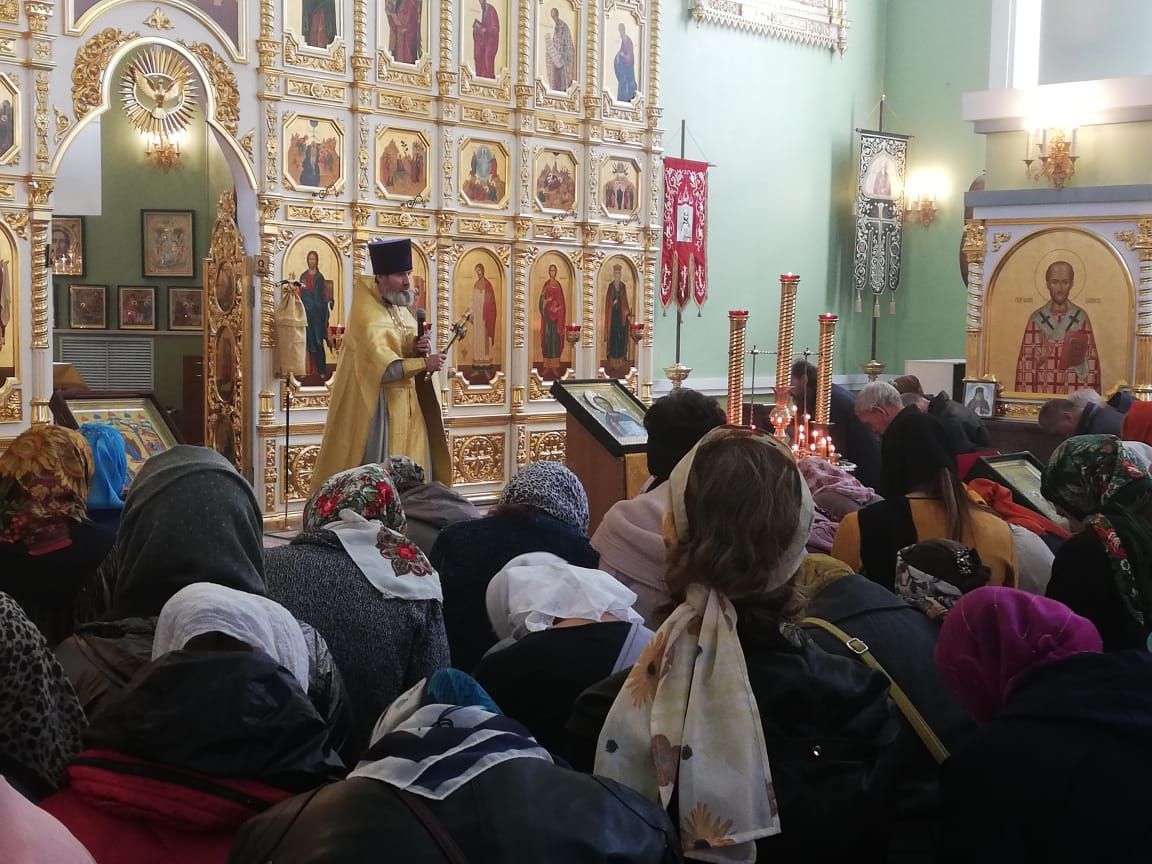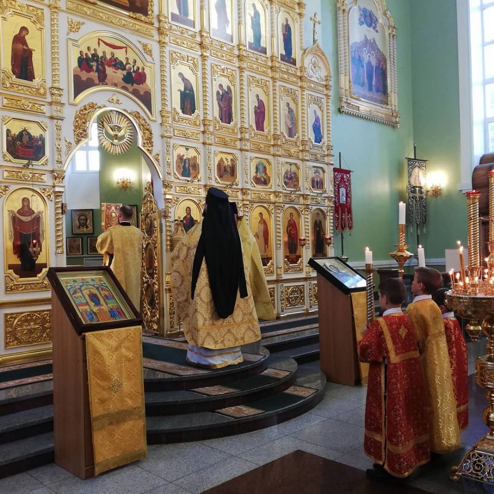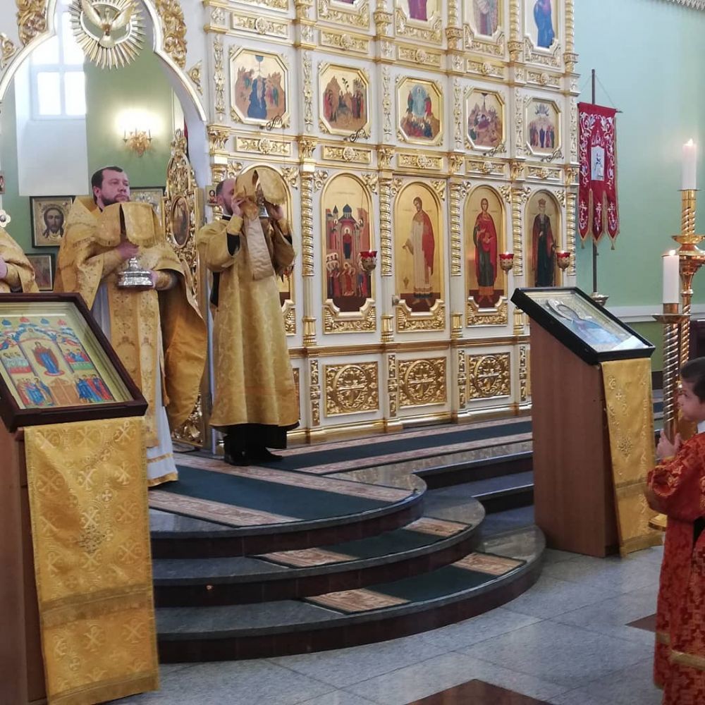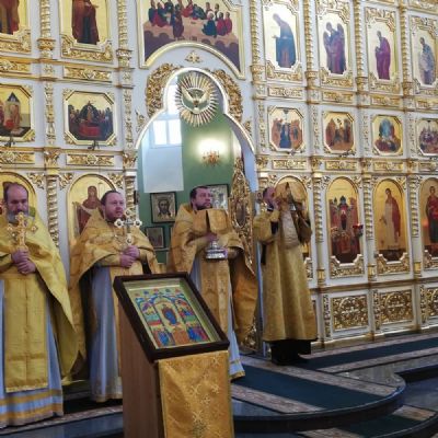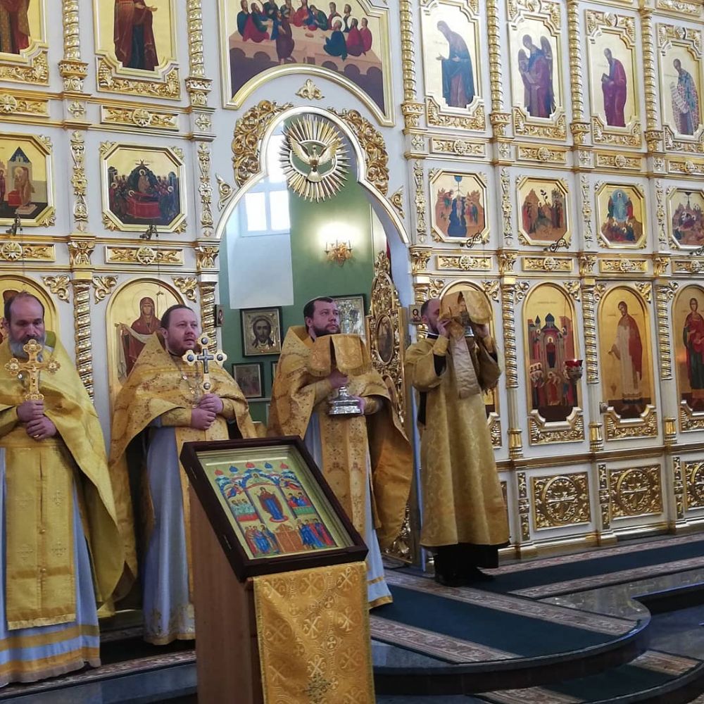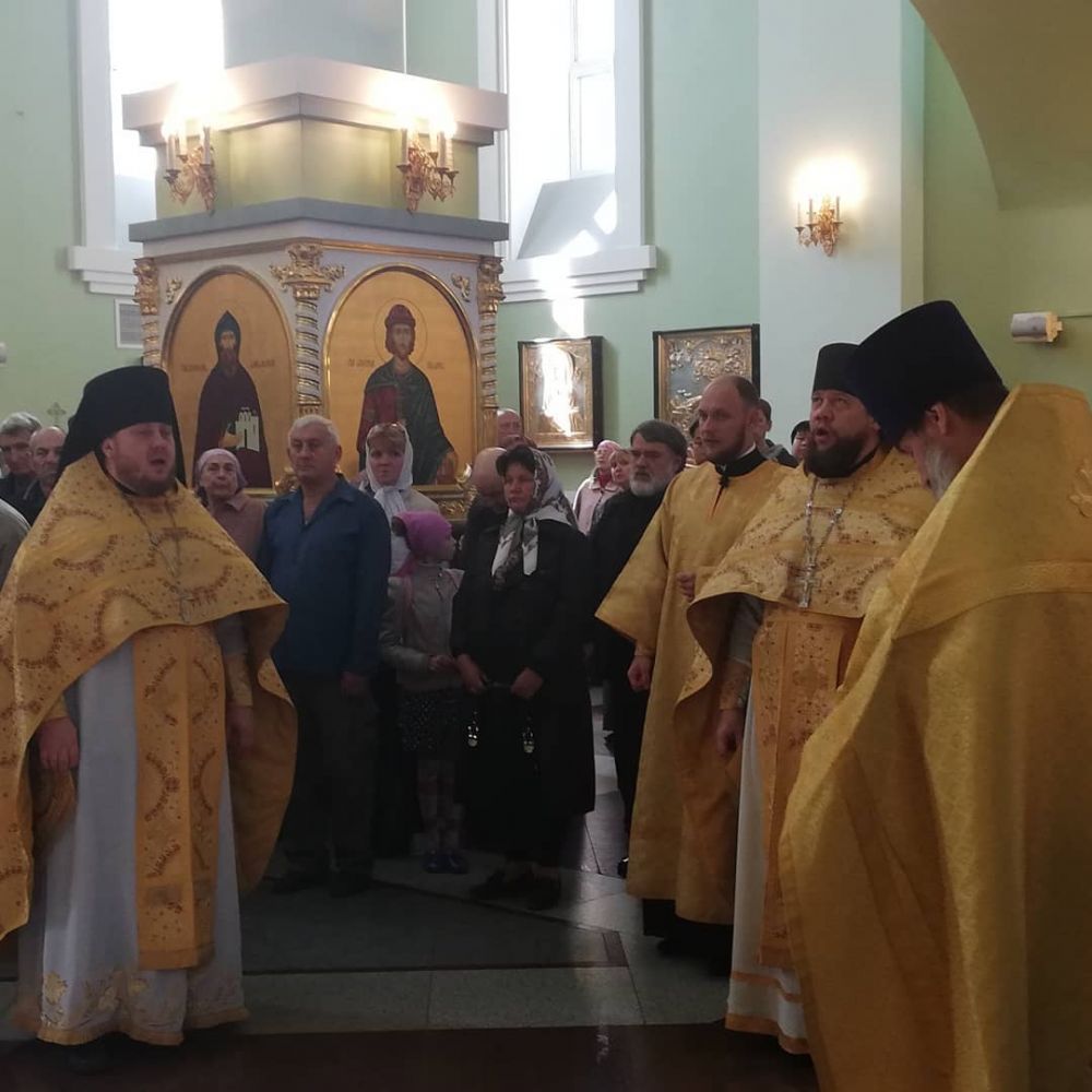Богослужение возглавил ключарь собора иеромонах Иоанн (Костин). Его преподобию сослужили игумен Тихон (Иршенко), протоиерей Игорь Шевчук, иерей Владимир Плотников.