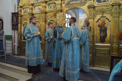 Его Высокопреосвященству сослужили настоятель храма Покрова Божией Матери, благочинный II округа Владивостокской епархии протоиерей Сергий Якутов, благочинный IV округа протоиерей Андрей Машанов, игумен Феофан (Зиборов), клирик Находкинской епархии протоиерей Роман Черников, иерей Павел Моисеев, иерей Сергий Качев, иерей Владимир Григорьев.