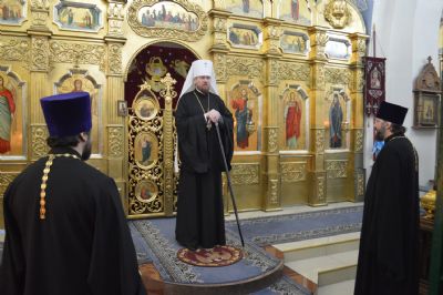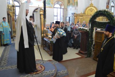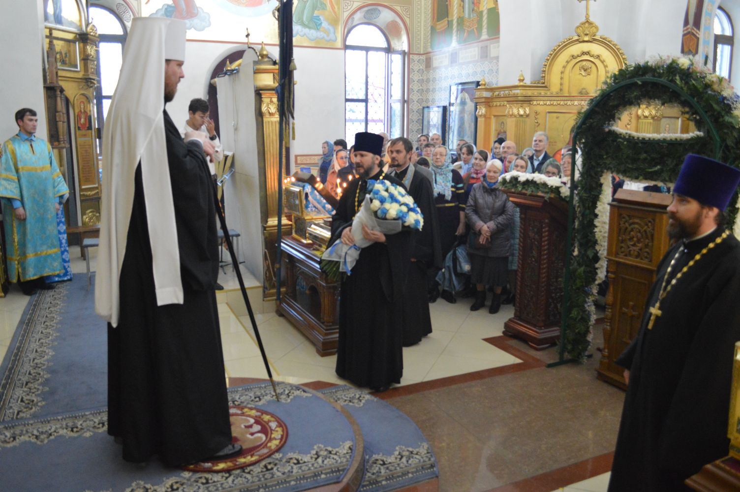 В завершение богослужения настоятель храма Покрова Пресвятой Богородицы протоиерей Сергий Якутов от имени клира и прихожан поблагодарил владыку за совместную молитву и преподнес ему букет цветов.