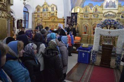 Митрополит Владимир поздравил молящихся с престольным праздником храма, обратился к верующим с архипастырским словом и преподал благословение.