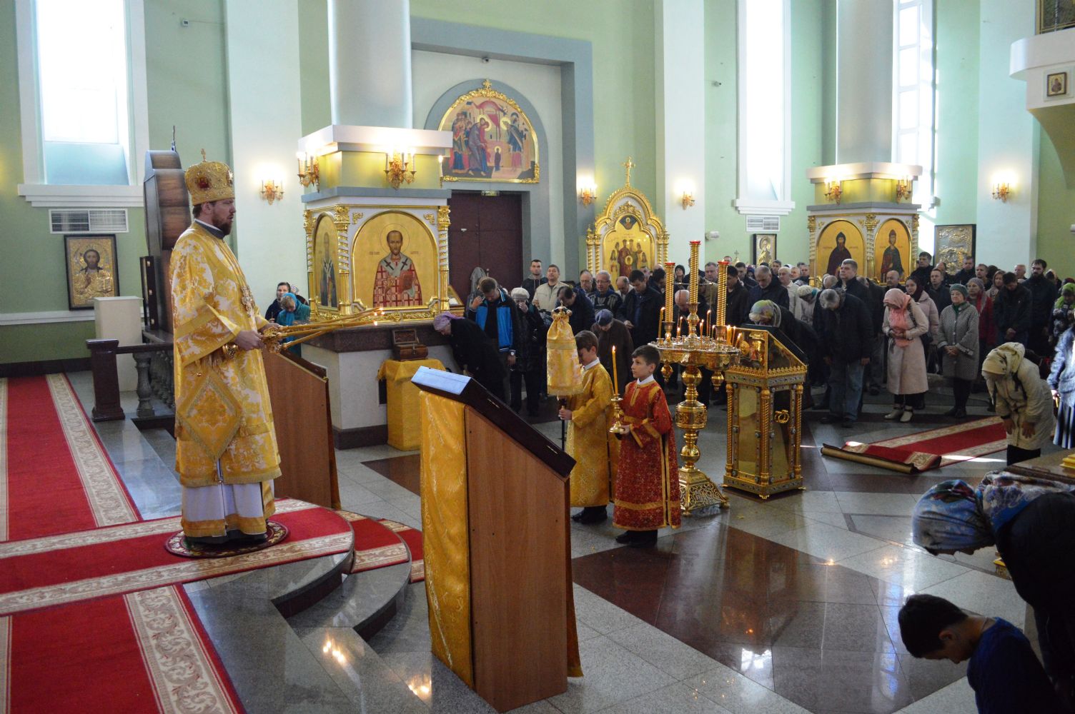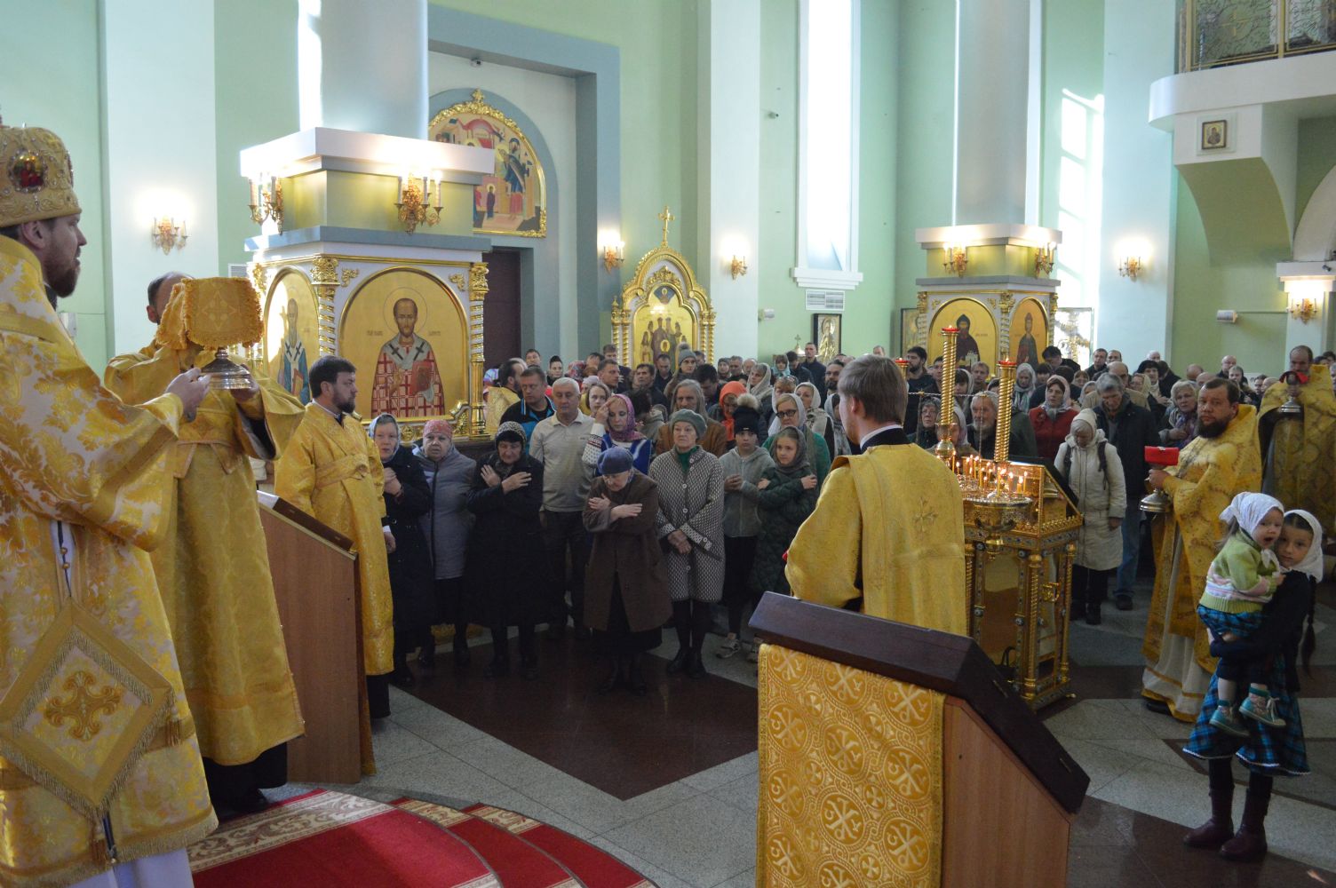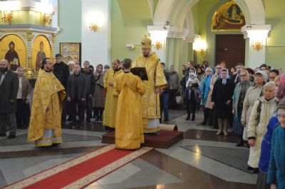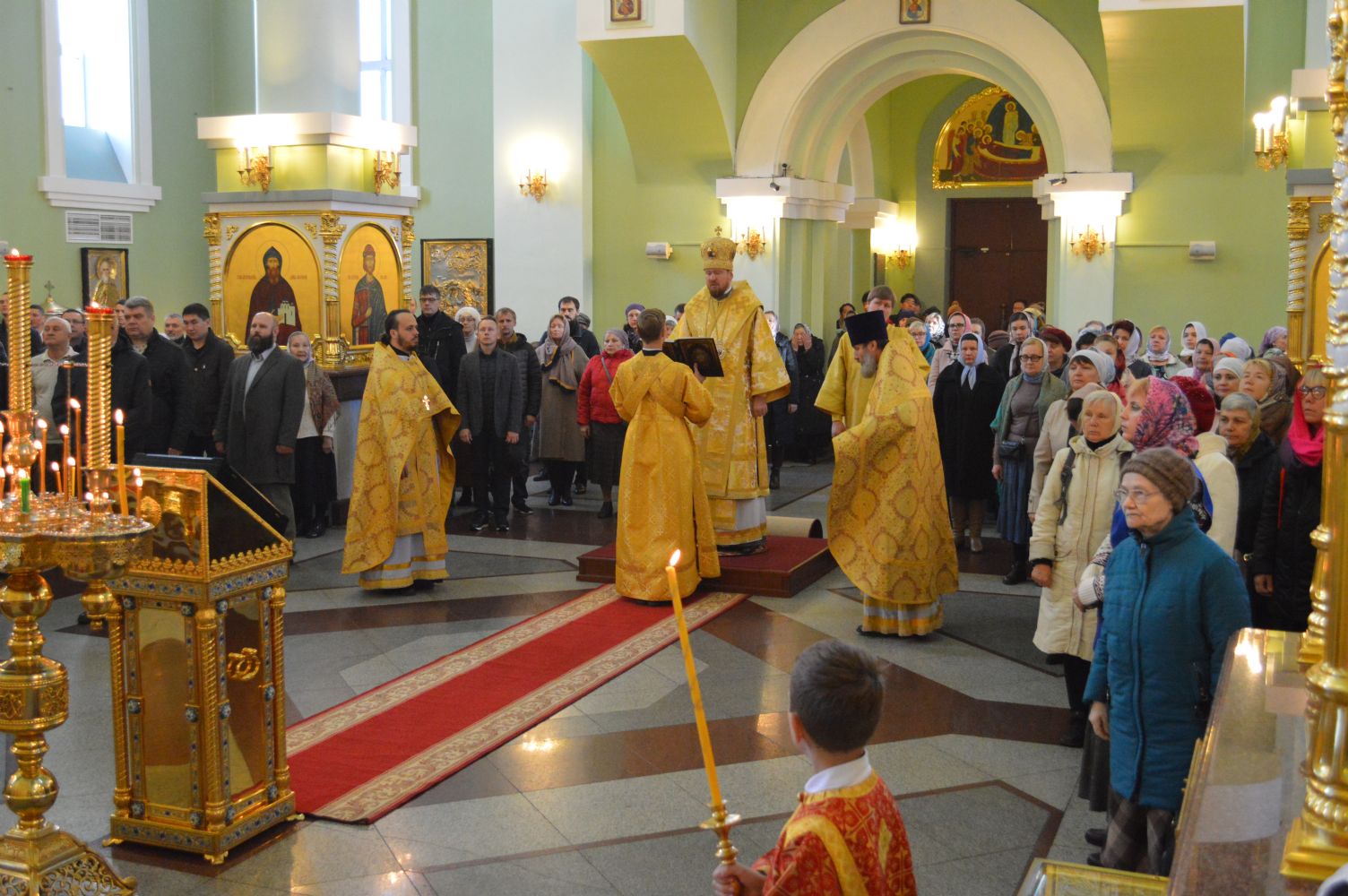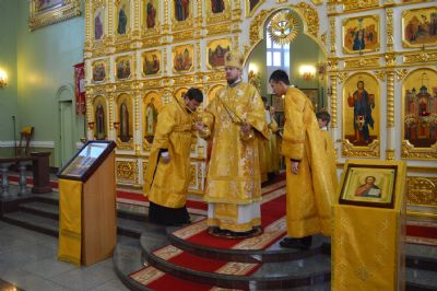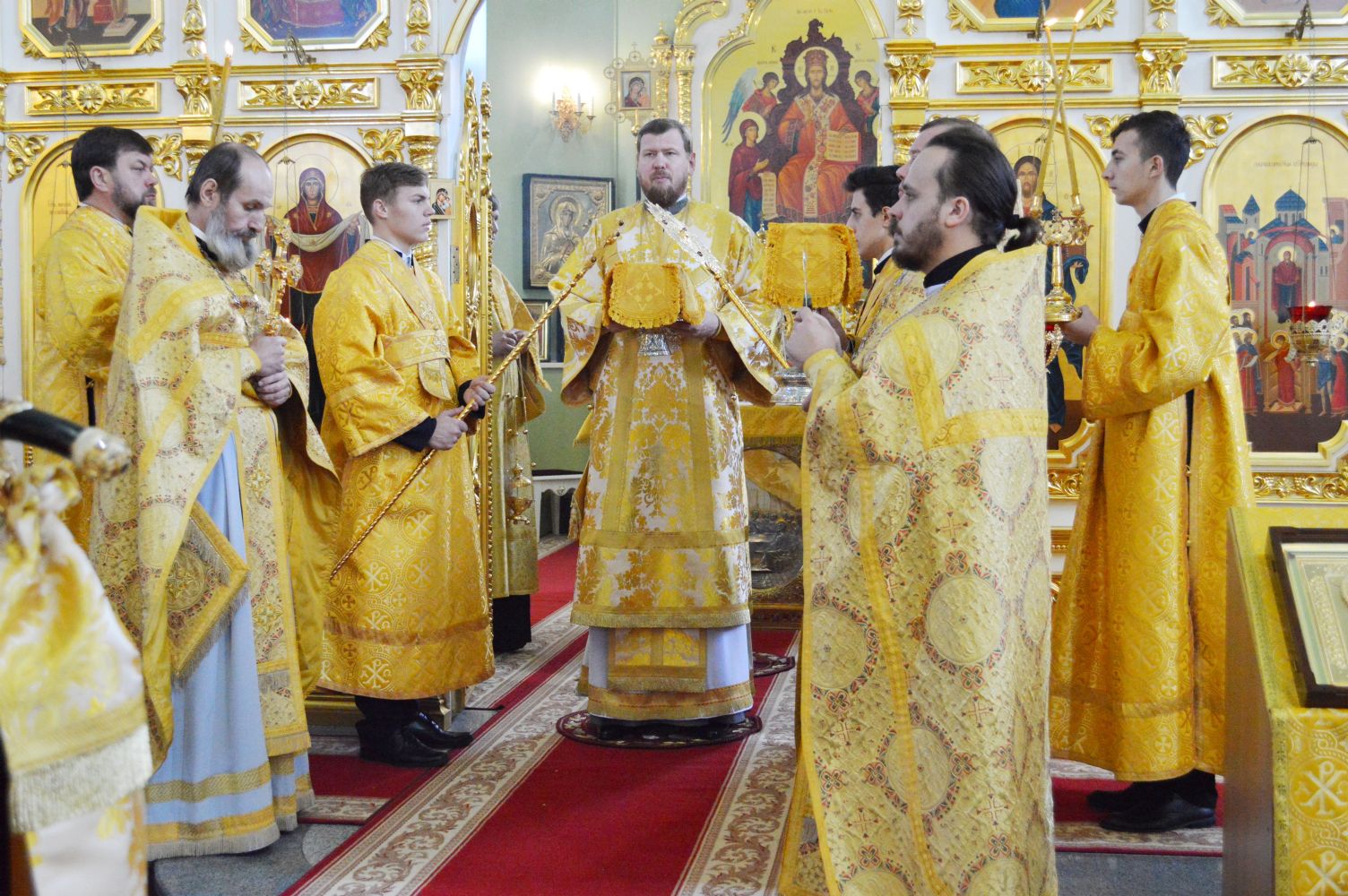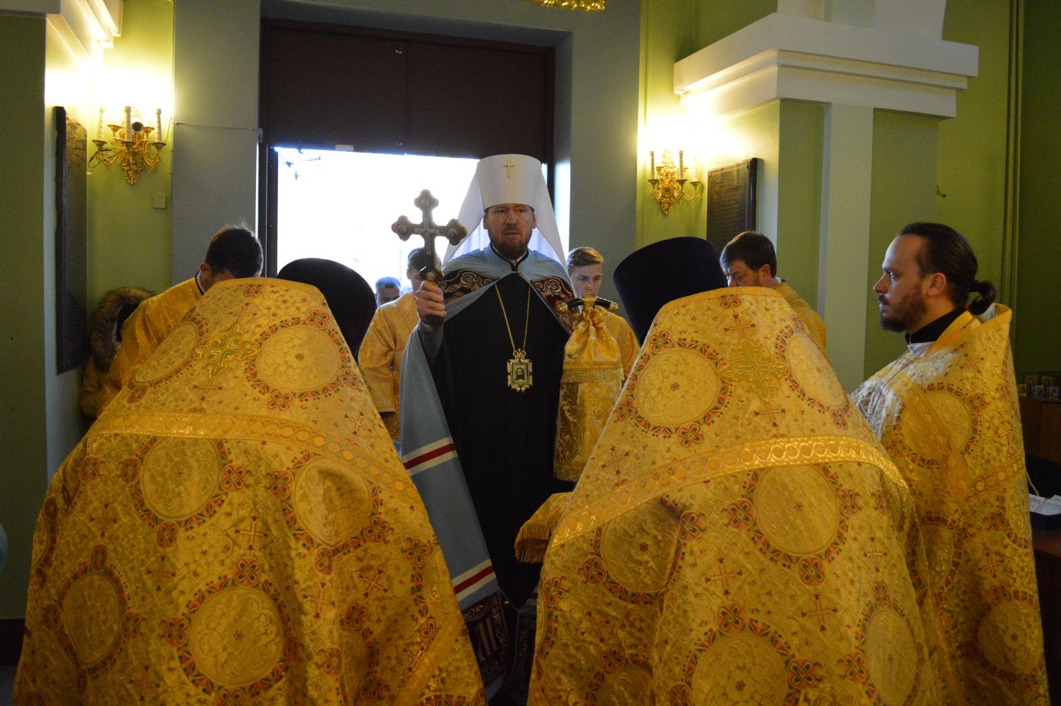 Его Высокопреосвященству сослужили: ключарь собора иеромонах Иоанн (Костин), протоиерей Игорь Шевчук, иерей Максим Точуков, иерей Владимир Плотников.
