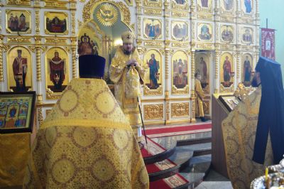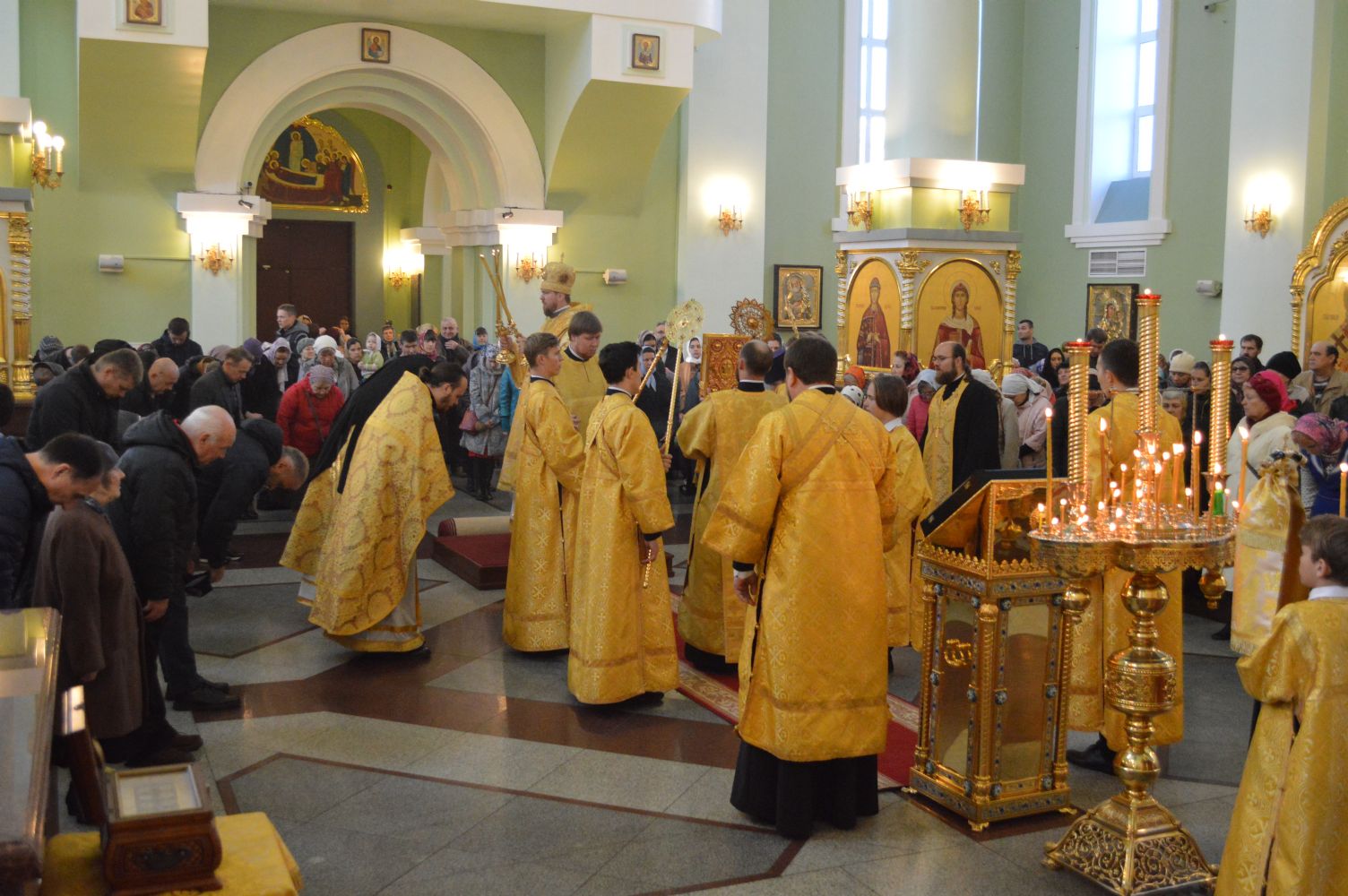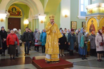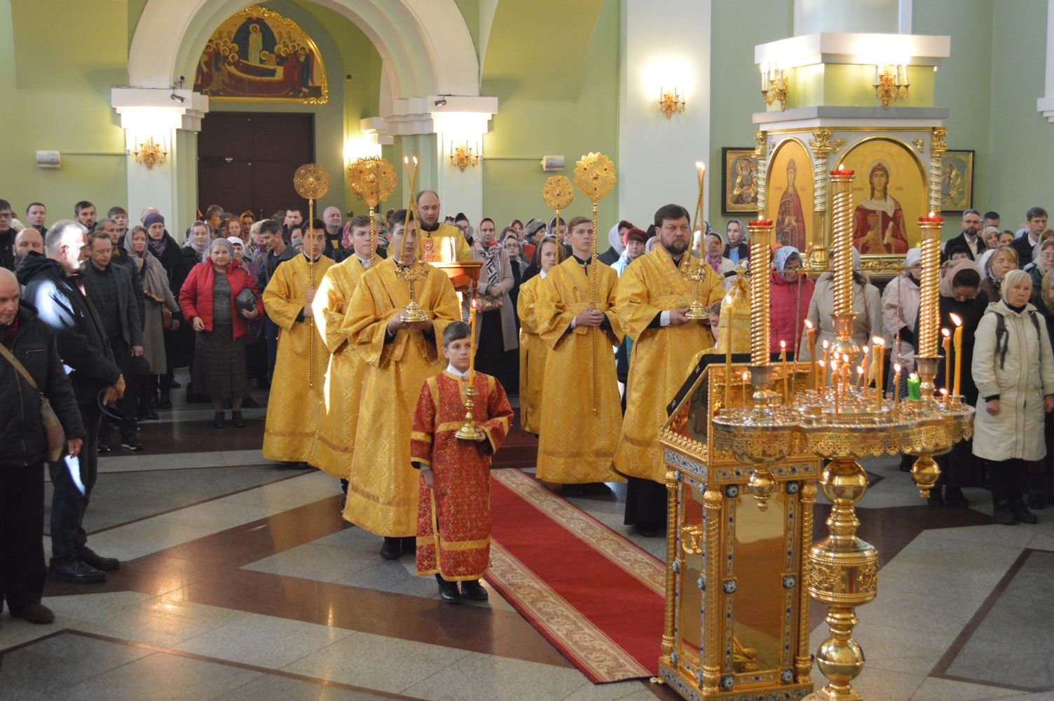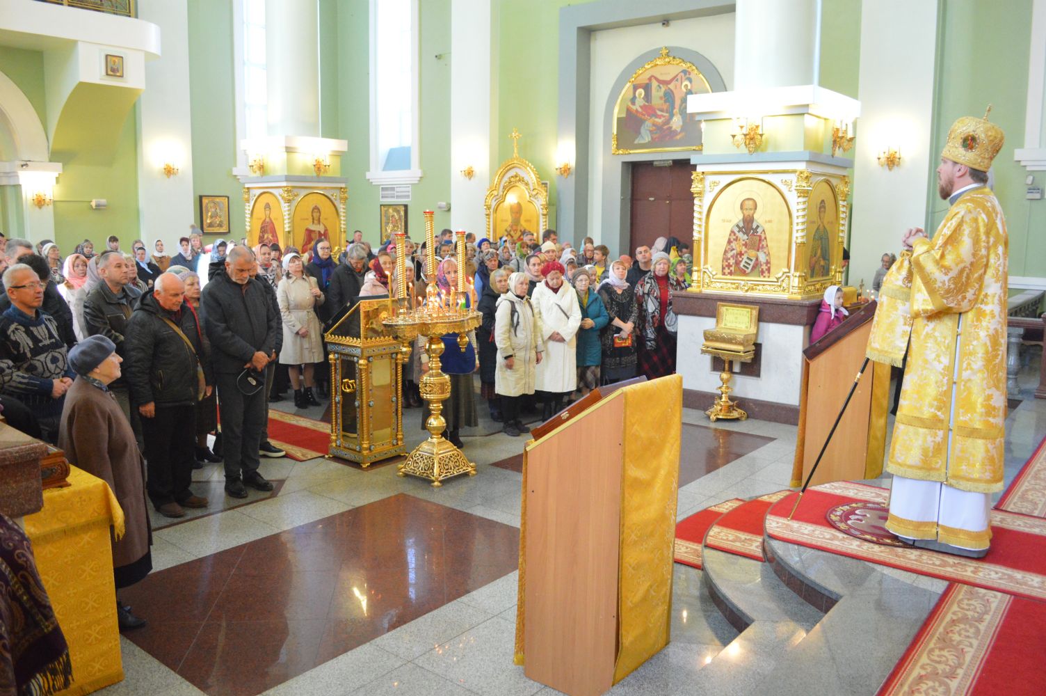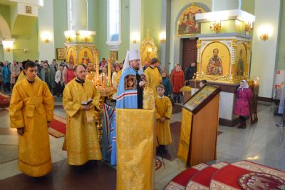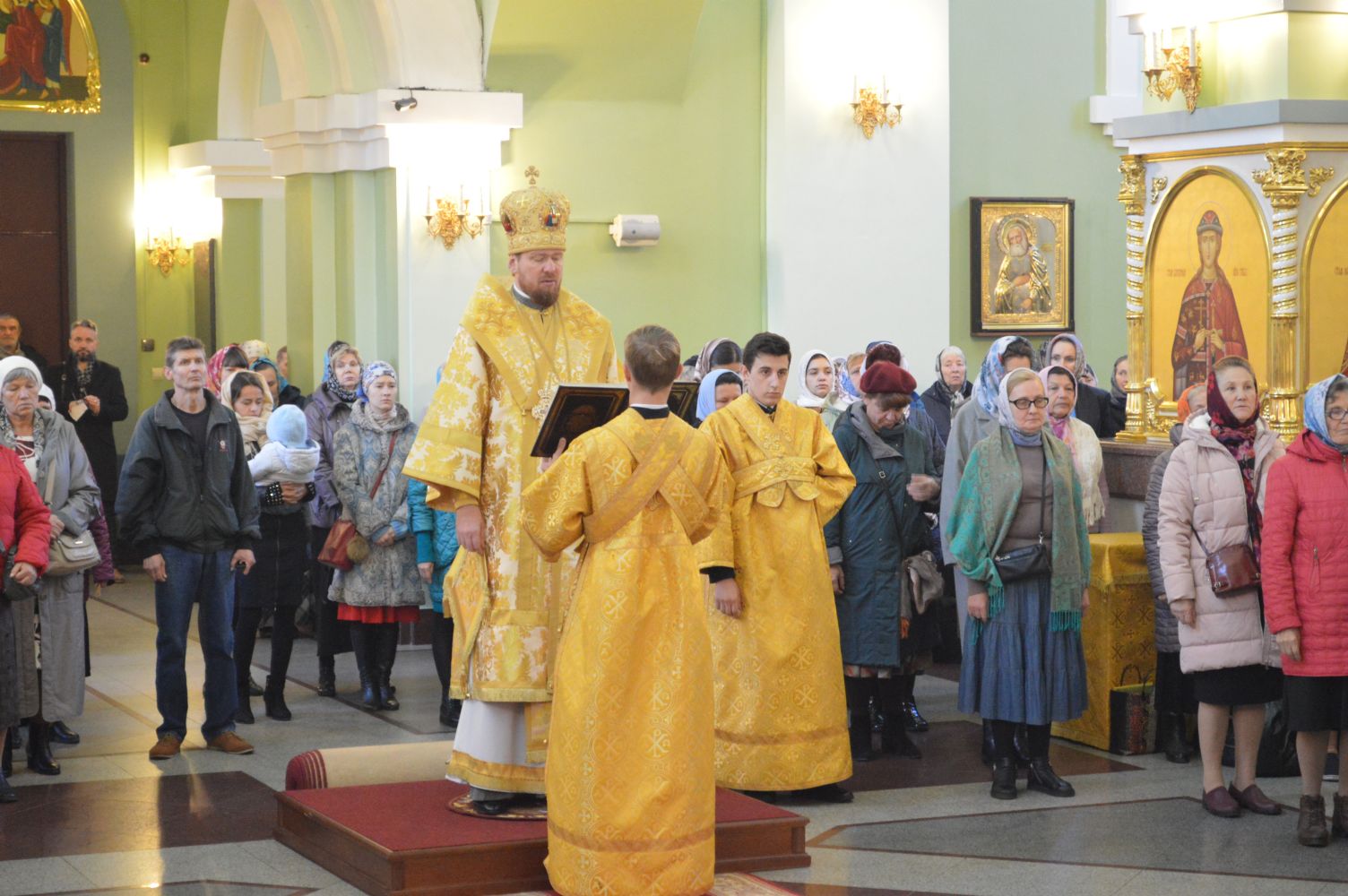 Его Высокопреосвященству сослужили: ключарь собора иеромонах Иоанн (Костин), протоиерей Игорь Шевчук, иерей Максим Точуков, иерей Владимир Плотников.