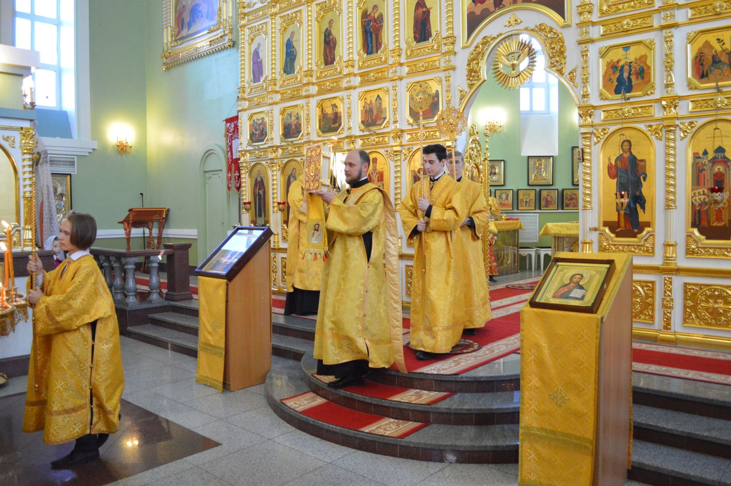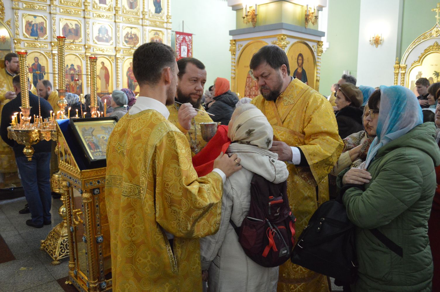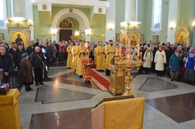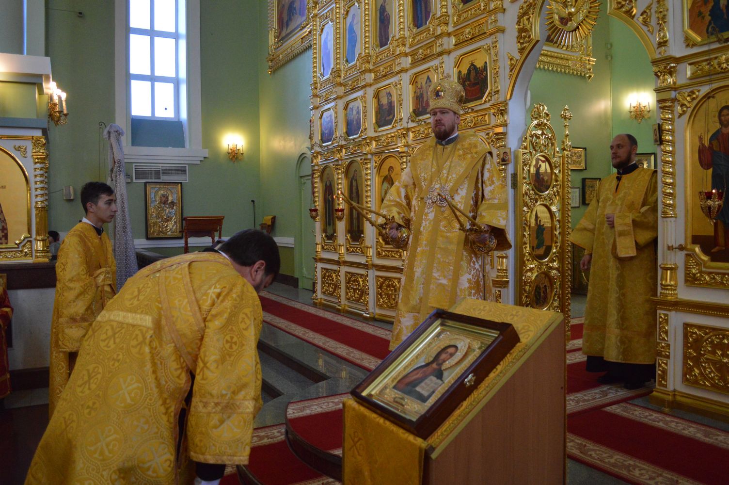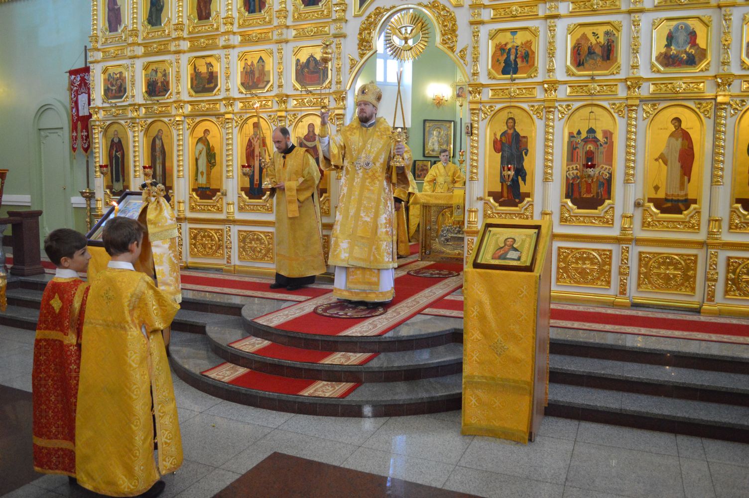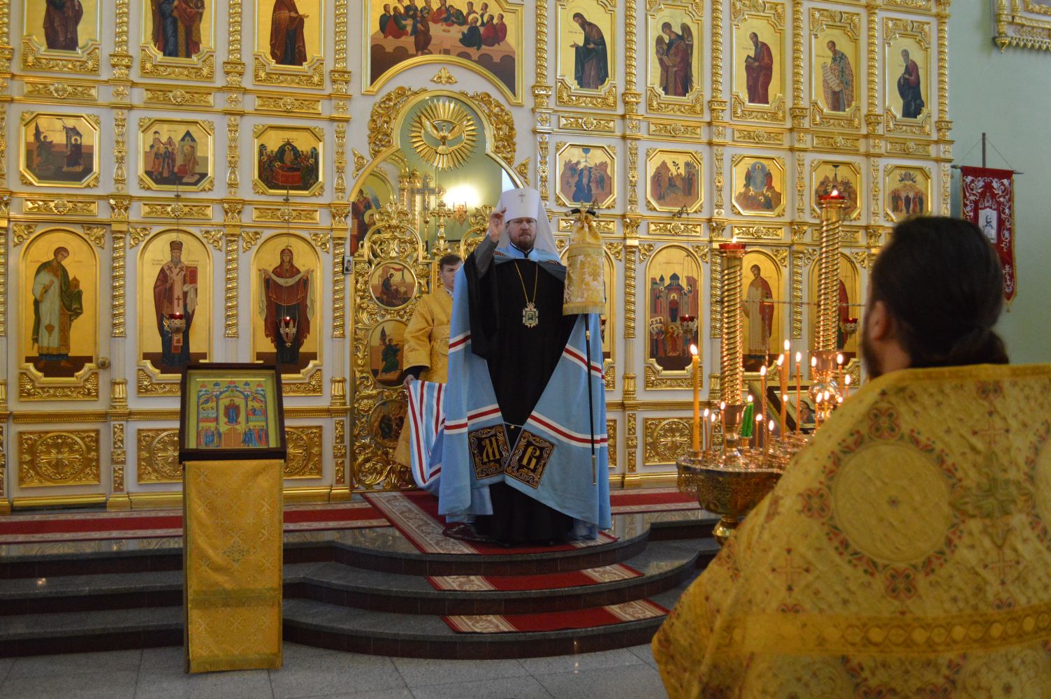 Его Высокопреосвященству сослужили: ключарь собора иеромонах Иоанн (Костин), протоиерей Игорь Шевчук, иерей Максим Точуков, иерей Владимир Плотников.