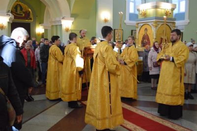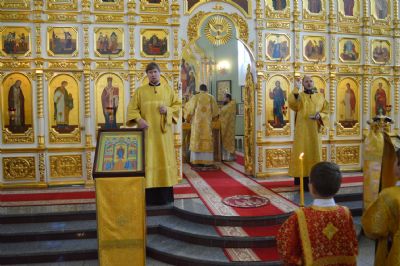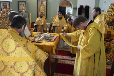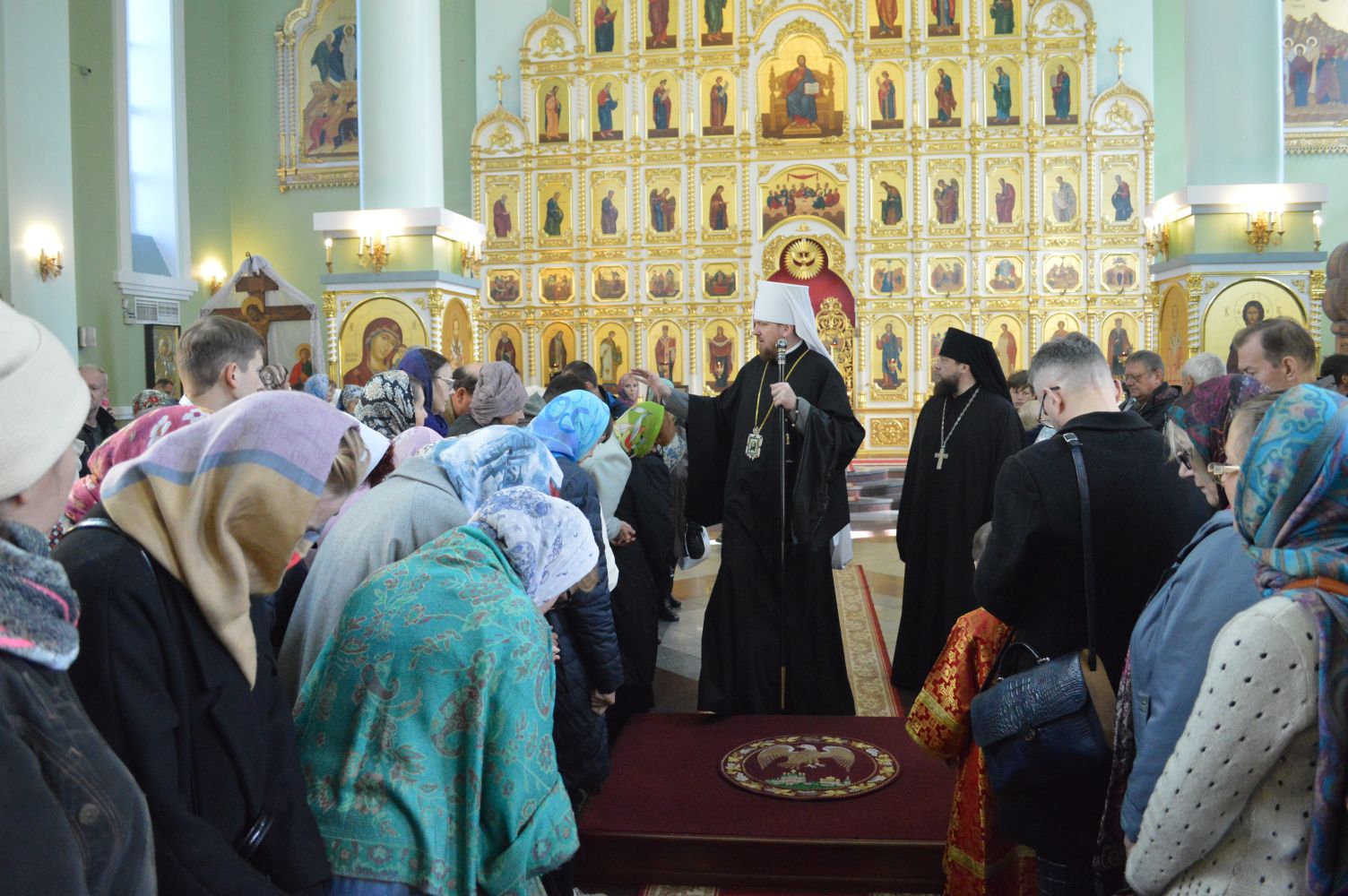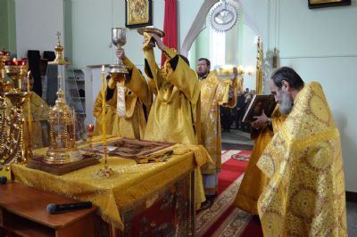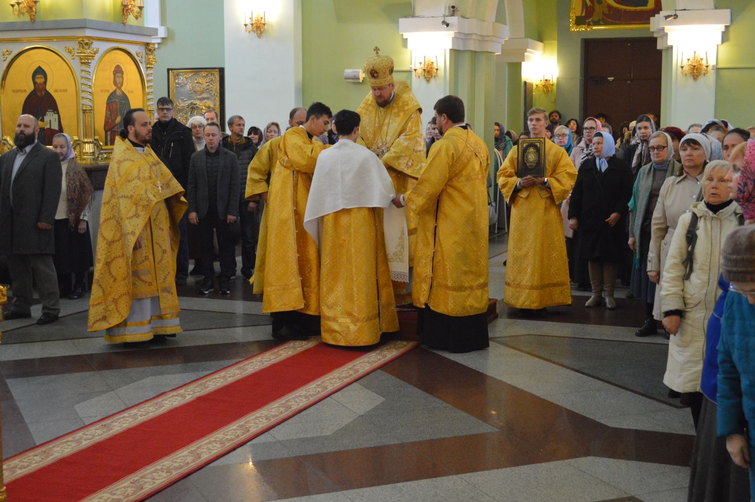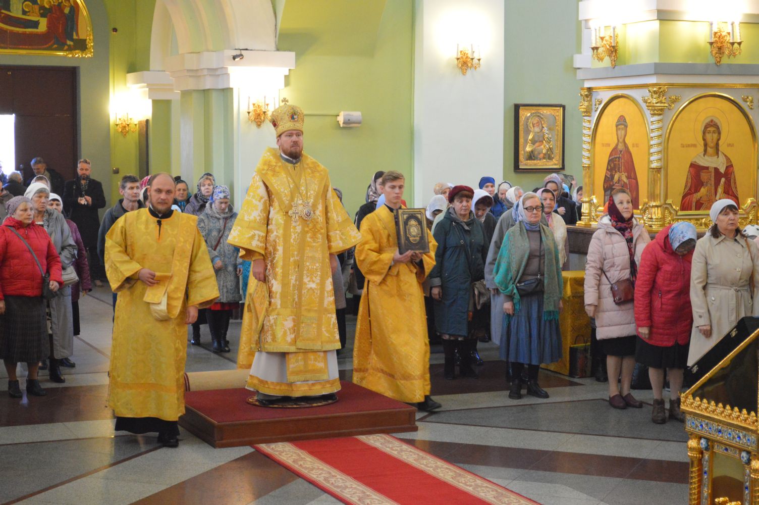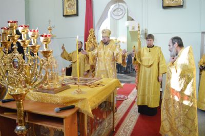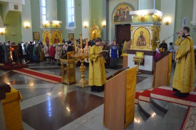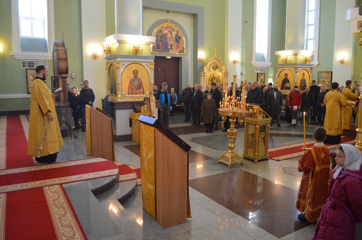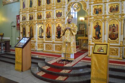 Его Высокопреосвященству сослужили: ключарь собора иеромонах Иоанн (Костин), протоиерей Игорь Шевчук, иерей Максим Точуков, иерей Владимир Плотников.
