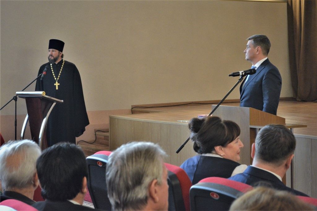 В ходе церемонии с приветственным словом выступил настоятель храма Покрова Божией Матери протоиерей Сергий Якутов, благочинный II округа. Отец Сергий пожелал Евгению Коржу добрых свершений на пользу жителей города.