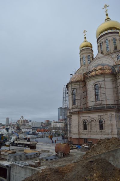 Владивосток. 13 ноября 2019 года митрополит Владивостокский и Приморский Владимир провел очередное рабочее совещание на строительной площадке Спасо-Преображенского кафедрального собора.