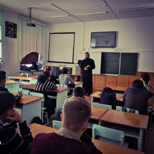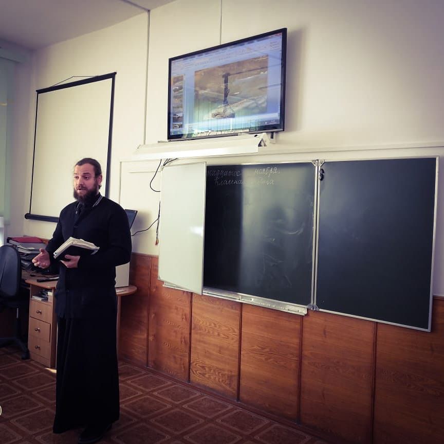 Дальнереченск. 15 ноября 2019 г. иерей Владимир Ковальчук, клирик храма Нерукотворного Образа Христа Спасителя совместно с инспектором ГИБДД Ириной Комилягиной провел встречу со старшеклассниками села Веденка под названием «Этого могло не случится». Встреча приурочена ко дню памяти погибших в дорожно- транспортных происшествиях