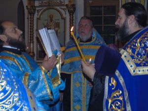 Ему сослужили настоятель храма Покрова Божией Матери г Лесезаводск игумен Никита (Зеленюк), благочинный VII округа, настоятель храма Нерукотворного образа Христа Спасителя г. Дальнереченска протоиерей Андрей Ванаков, а также клирики храма иконы Пресвятой Богородицы «Скоропослушница» протоиерей Сергий Сеник, иерей Сергий Ющенко, иерей Михаил Стуков.
