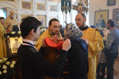 В завершение богослужения владыка Владимир обратился к верующим с архипастырским словом: «Мы должны каждый на своем месте достойно трудиться. Не ленясь, не пребывая в расслаблении, но в то же время, не рассчитывая только на свои силы, а по примеру государей российских, по примеру наших князей благоверных, уповать на волю Божию, призывая Господа Бога и всех святых, угодивших Ему, вместе с Пресвятой Богородицей в помощь. Только назидаясь примером наших святых, только имея перед мысленным взором их подвиг, мы сможем правильно устроять и личную, и семейную, и общественную жизнь. Пусть пример святого благоверного князя Александра Невского, его молитвенное предстательство, его любовь к Родине сподвигают и нас трудиться во славу Божию, принося пользу той малой родине, на которой мы призваны сегодня жить, трудиться, служить Богу и нашим ближним». — Сказал владыка Владимир.