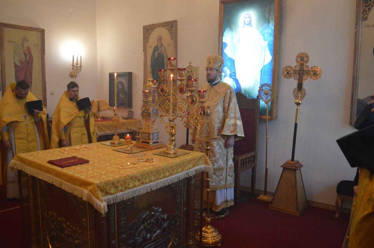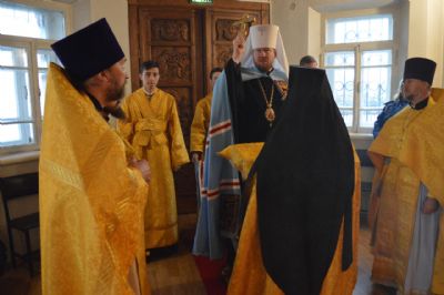 Его Высокопреосвященству сослужили благочинный монастырей Владивостокской епархии, настоятель Свято-Серафимовского мужского монастыря игумен Климент (Кривоносов), протоиерей Вадим Маишев, иеромонах Иннокентий (Корчага), иерей Игорь Спицин.