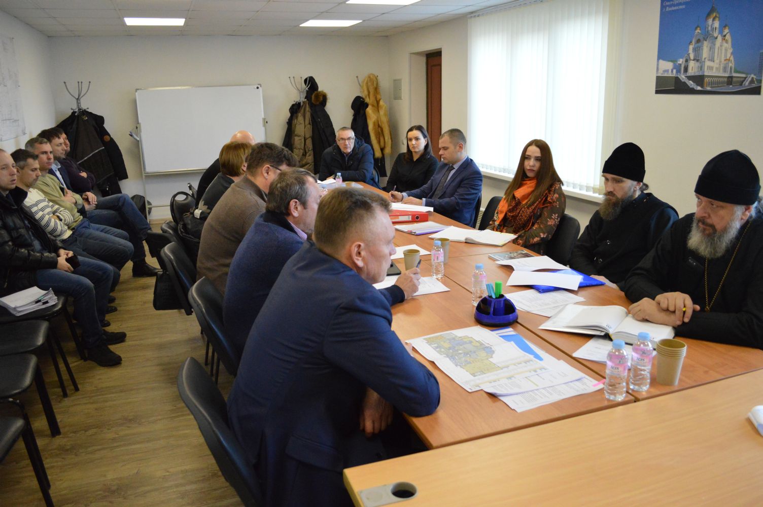 В совещании приняли участие секретарь Владивостокской епархии, ответственный за строительство Спасо-Преображенского кафедрального собора протоиерей Игорь Талько, настоятель Свято-Серафимовского мужского монастыря игумен Климент (Кривоносов), заместитель главы администрации города Владивостока Игорь Белов, руководитель генеральной подрядной организации по строительству собора ООО «Ремонтно-строительная компания КФК» Владимир Каспин, генеральный директор ООО «Атр-Строй» Евгений Кармазин, руководитель компании выполняющей функции технического заказчика ООО «Бельведер» Евгений Филимонов, представители субподрядных организаций.