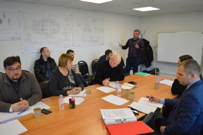 Главный инженер строительной компании «АТР-СТРОЙ» доложил о ходе кровельных работ, а также затирке швов кирпичной кладки на объекте. Согласно докладу, работы ведутся по графику.