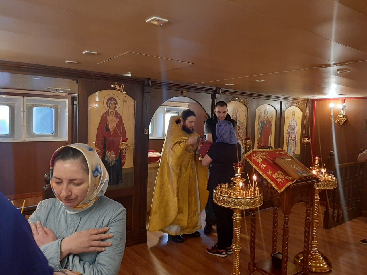 В своей проповеди отец Иоанн отмечает, что одно из чудес святителя Николая - это само наличие храма на плавбазе «Всеволод Сибирцев» и возможность церковного служения в открытом море.