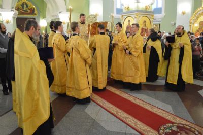 Его Высокопреосвященству сослужили клирики собора игумен Антоний (Каменчук), игумен Тихон (Иршенко), протоиерей Игорь Шевчук, иерей Максим Точуков.