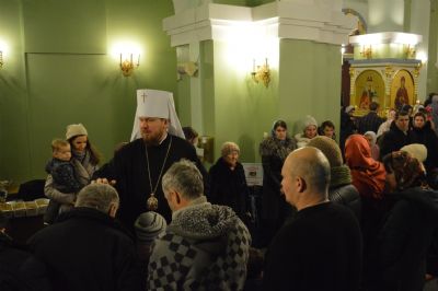 После чтения Святого Евангелия владыка Владимир совершил помазание верующих освященным елеем.