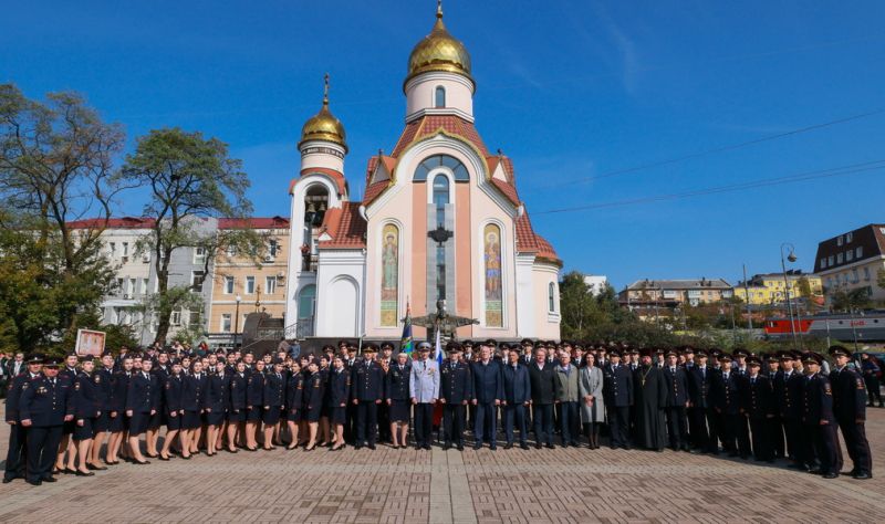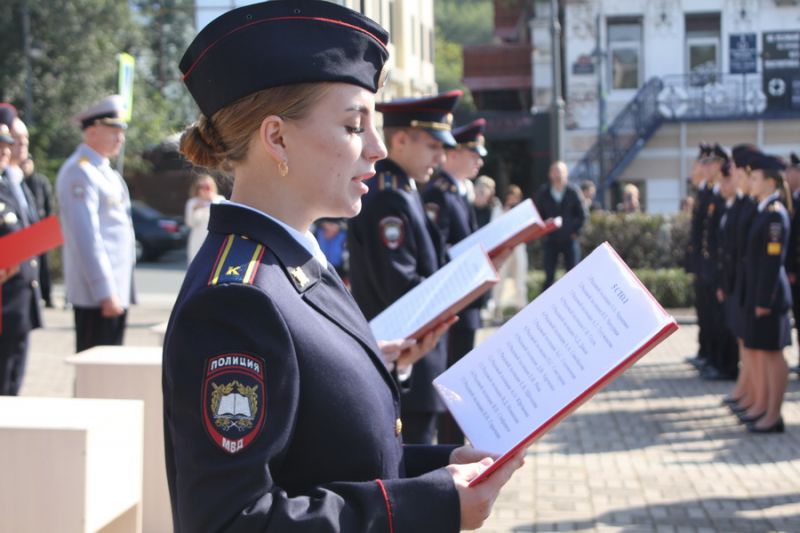 Владивосток. 8 октября 2022 года состоялась торжественная церемония приведения к Присяге курсантов первого курса Владивостокского филиала Дальневосточного юридического института МВД России. Церемония прошла на территории Свято-Игоревского храма, у Мемориала Памяти сотрудников органов внутренних дел, погибших при исполнении служебного долга.
