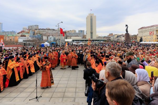 12 апреля, в день празднования Светлой Пасхи, жители Владивостока приняли участие в торжественном крестном ходе по Океанскому проспекту. Шествие началось от храма Покрова Пресвятой Богородицы и завершилось у Спасо-Преображенского кафедрального собора.