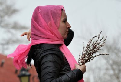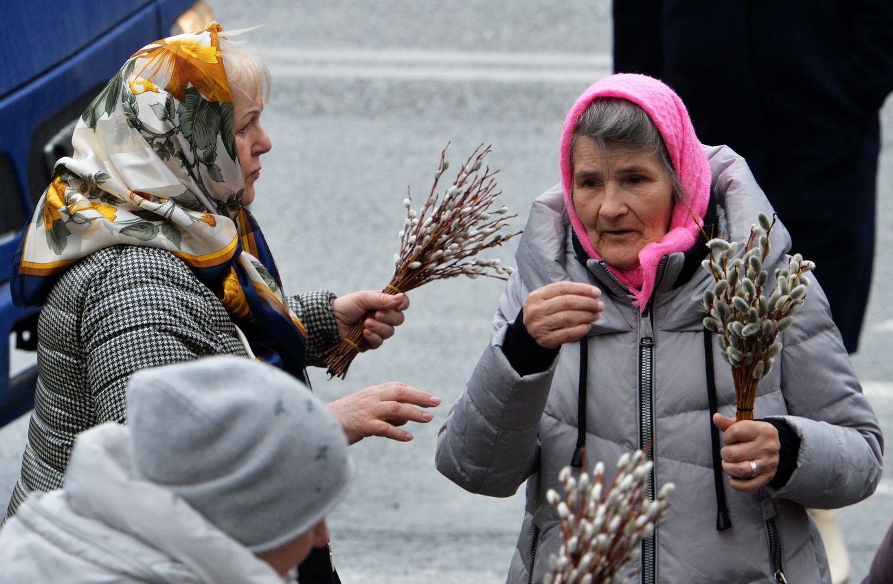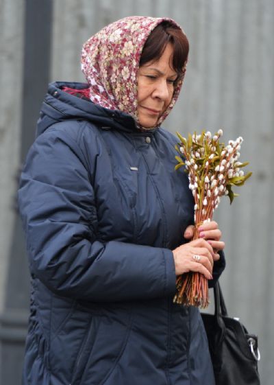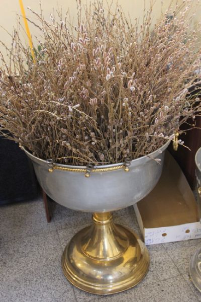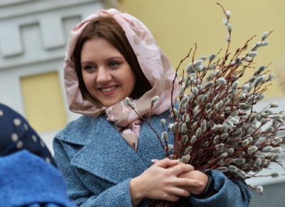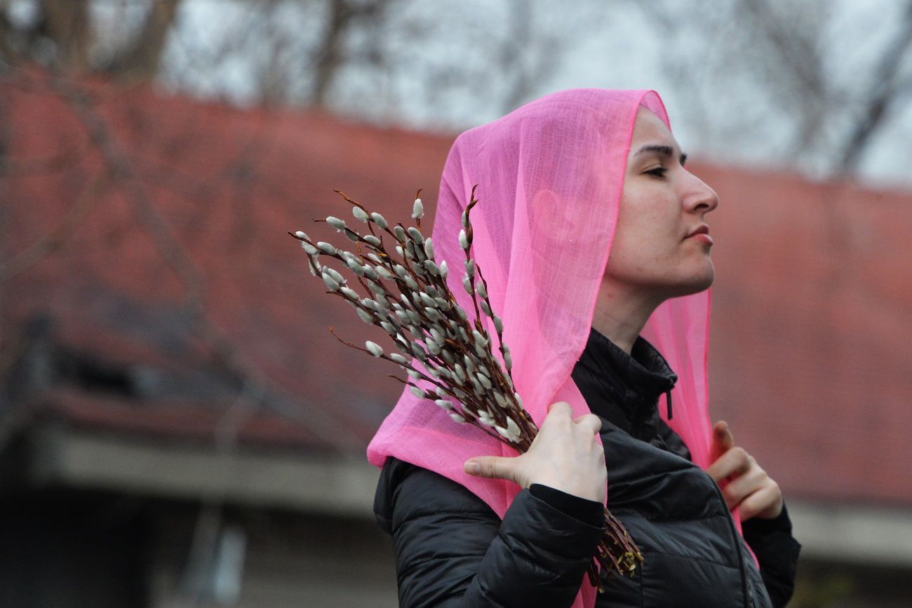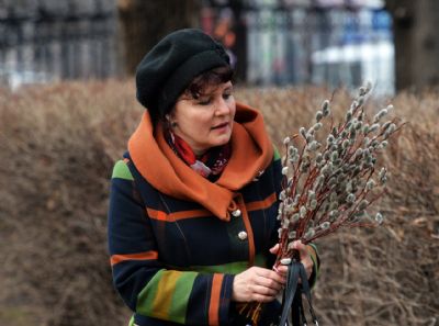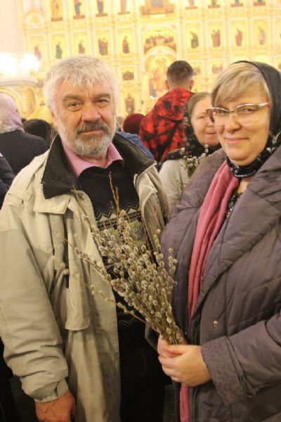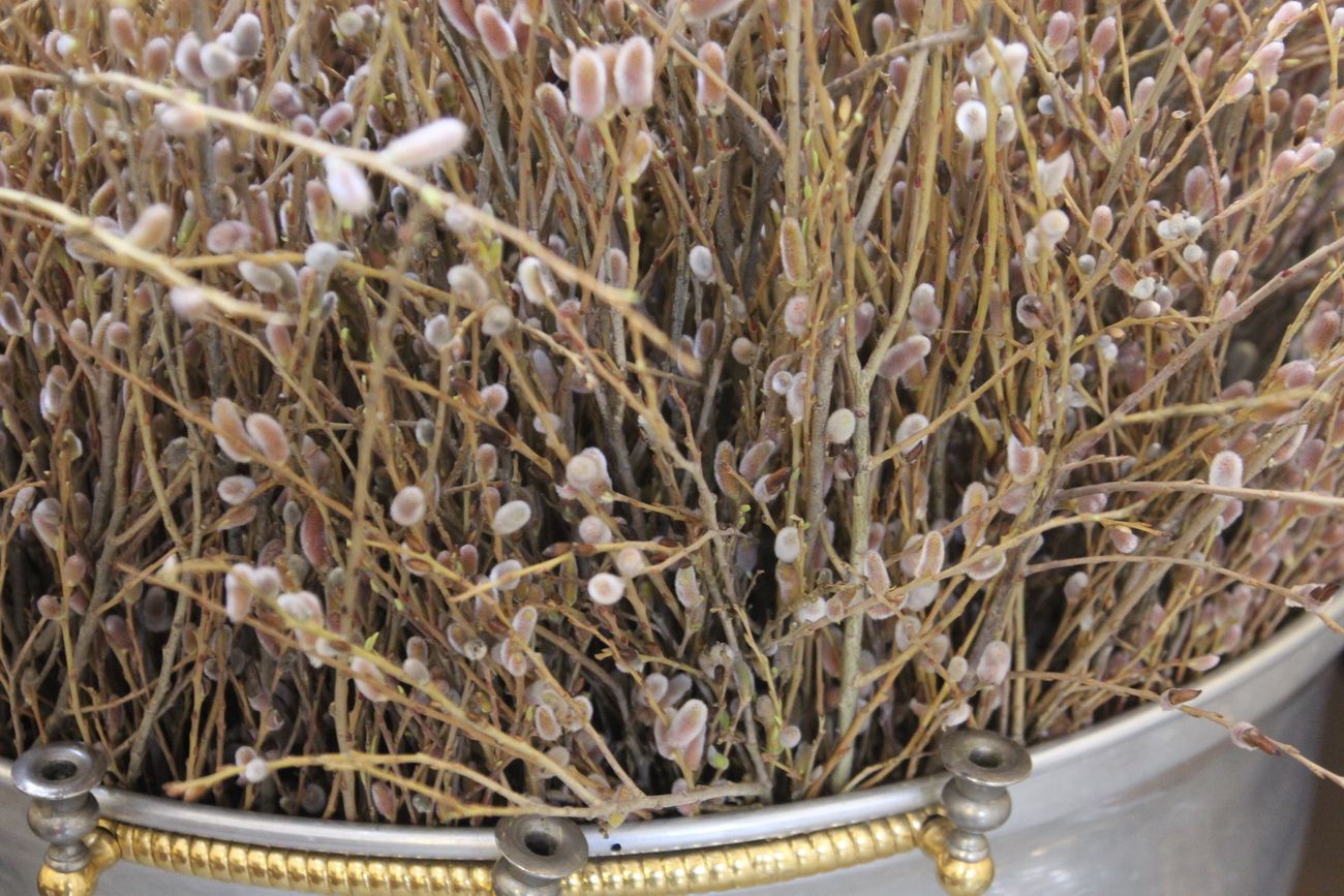 После чтения Евангелия владыка совершил традиционное освящение вербных и пальмовых ветвей (ваий). По окончании богослужения Его Высокопреосвященство поздравил верующих с праздником и окропил вербы святой водой.