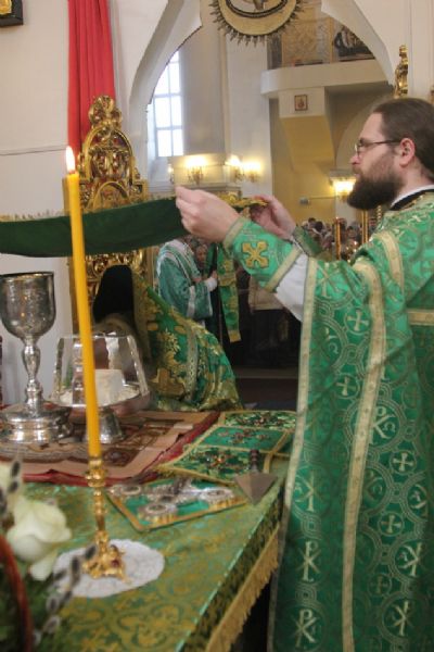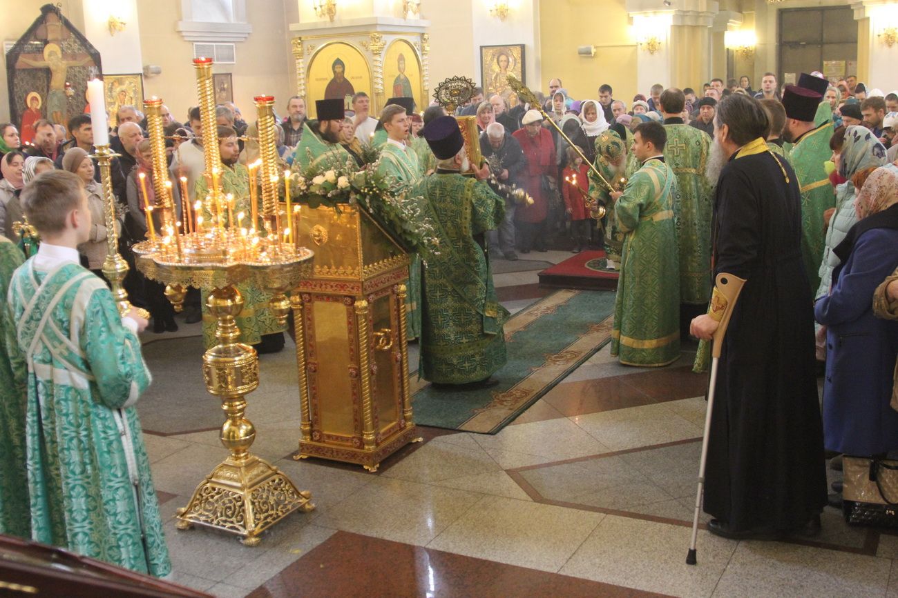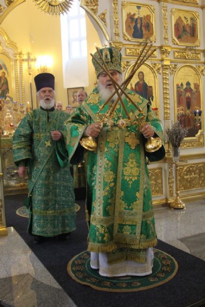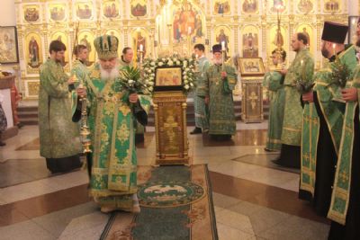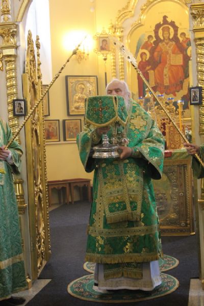 Его Высокопреосвященству сослужили благочинный I округа протоиерей Димитрий Федорин и клирики собора. Богослужебные песнопения исполнил митрополичий хор под управлением Людмилы Макаренко.