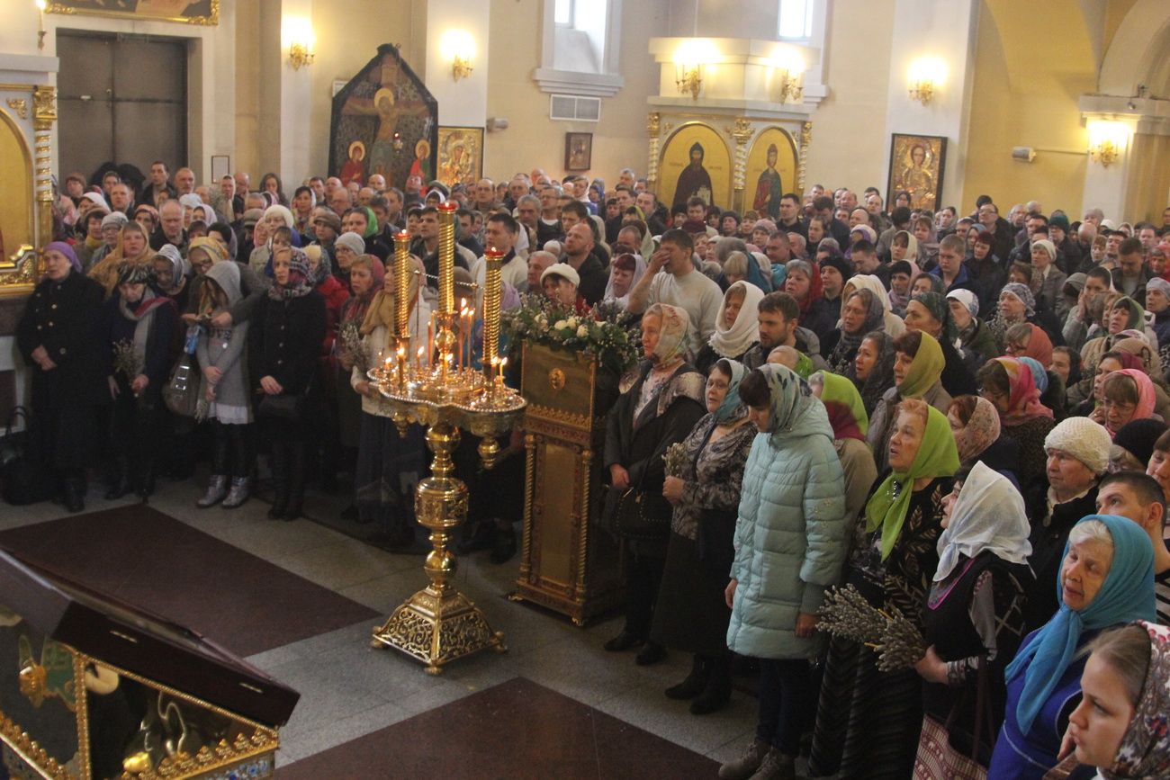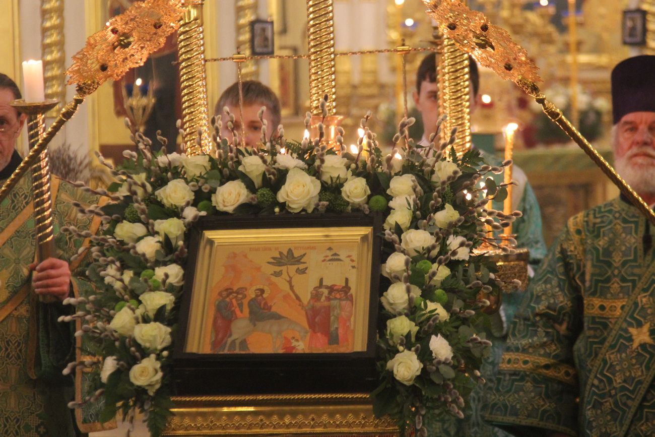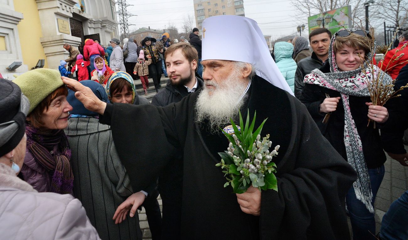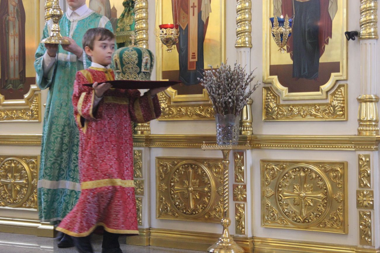 Владивосток. 1 апреля 2018 года, в Неделю 6-ю Великого поста, ваий, праздник Входа Господня в Иерусалим, митрополит Владивостокский и Приморский Вениамин возглавил служение Божественной литургии в Покровском кафедральном соборе.