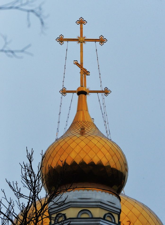 После сугубой ектении владыка Вениамин вознес молитву о мире на Украине. Глава Приморской митрополии совершил славление празднику и обратился к верующим с архипастырским словом.
