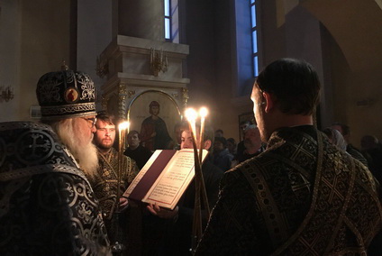 Митрополит Вениамин совершил утреню Великой Пятницы с чтением 12 Евангелий