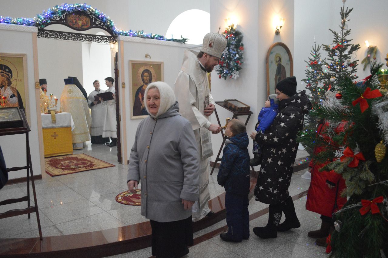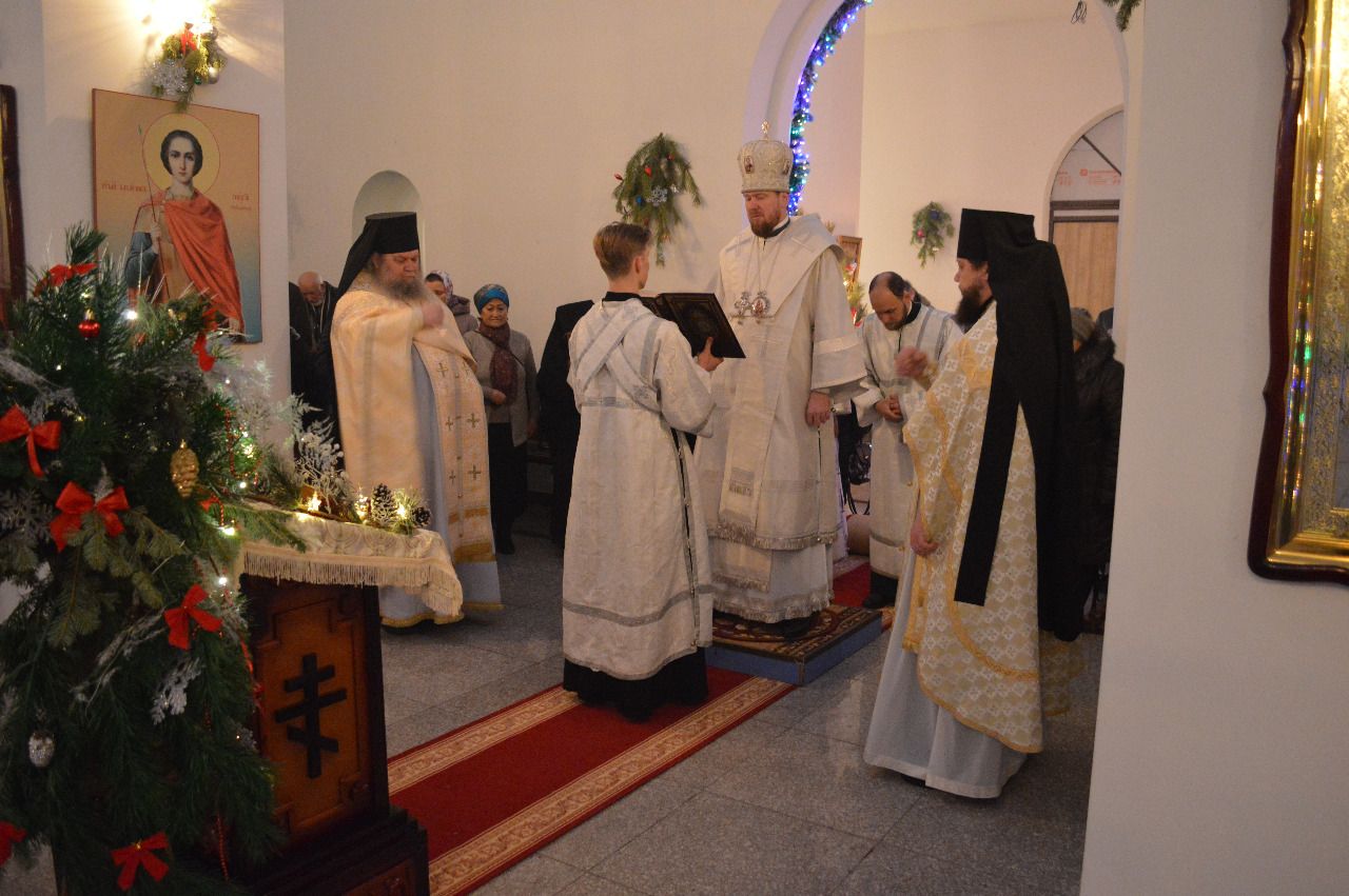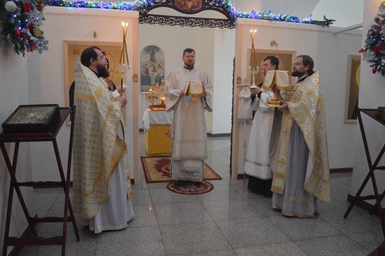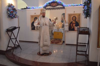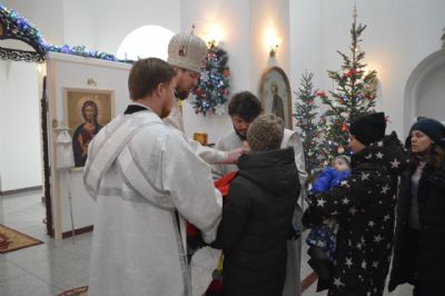 По отпусте литургии было совершено славление Господа Бога и Спаса нашего Иисуса Христа в честь праздника Его Рождества.