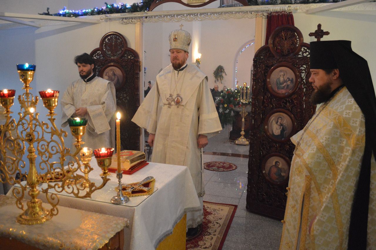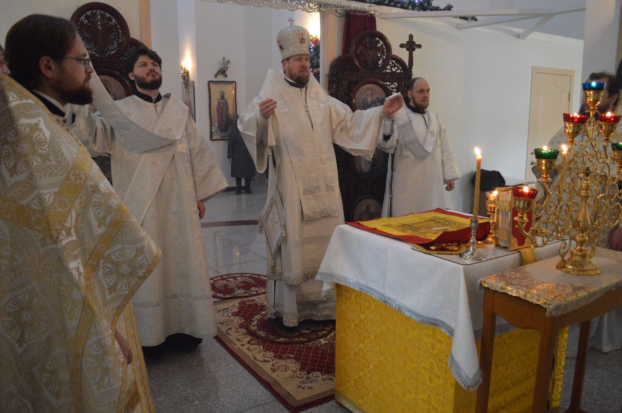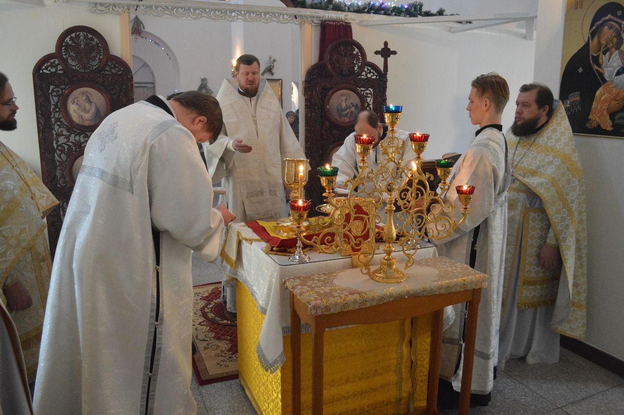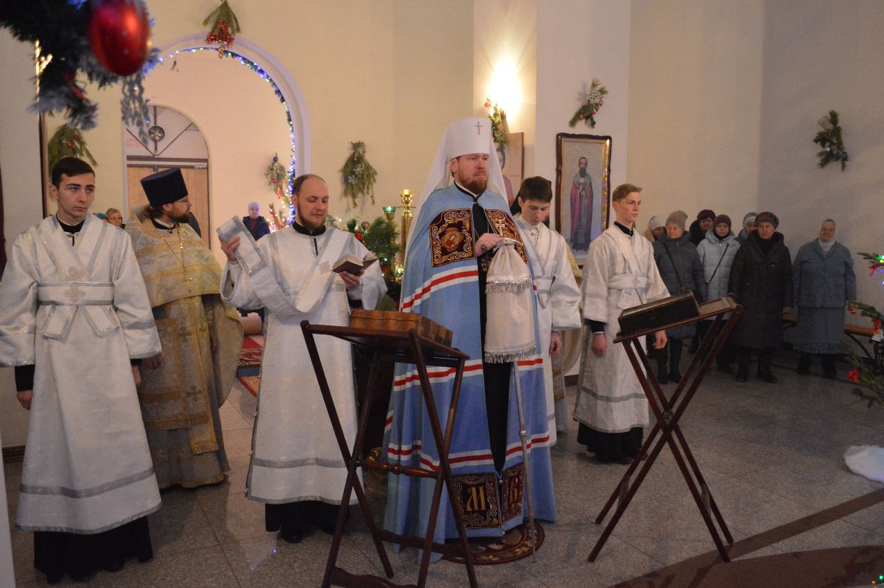 По отпусте литургии было совершено славление Господа Бога и Спаса нашего Иисуса Христа в честь праздника Его Рождества.