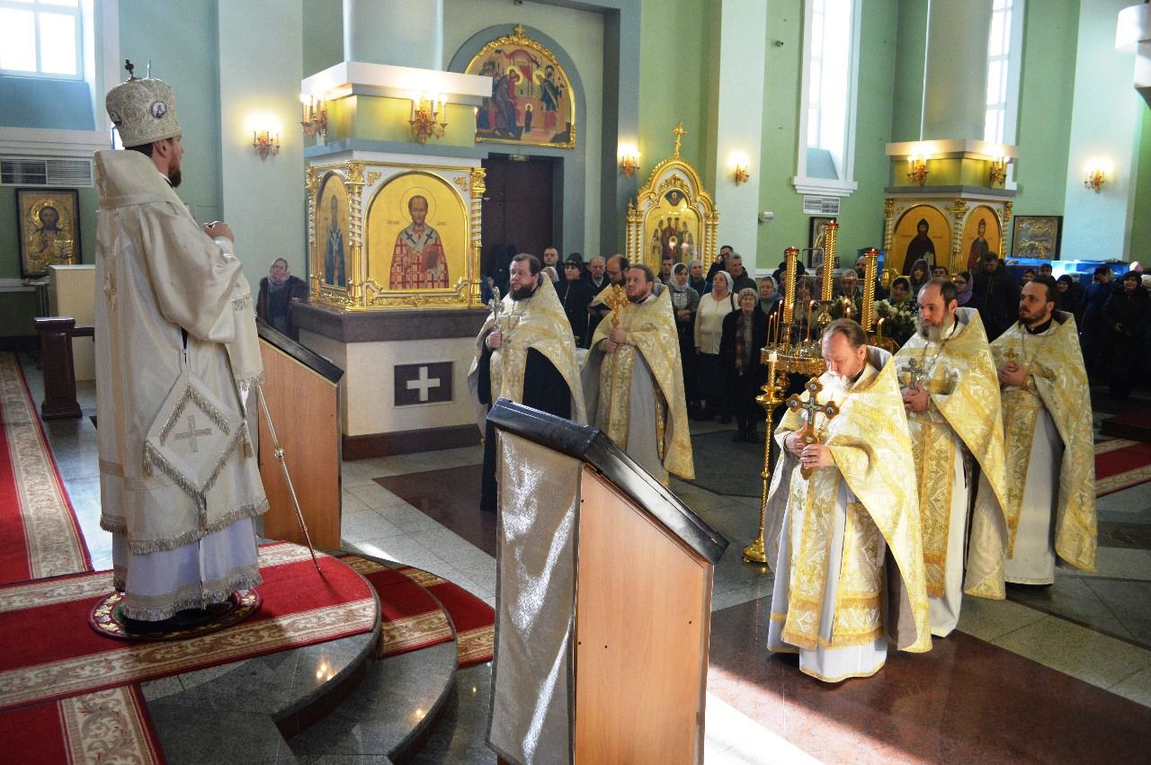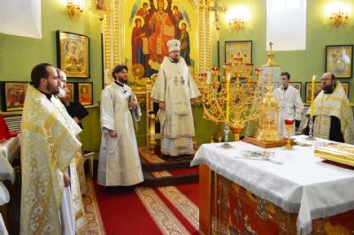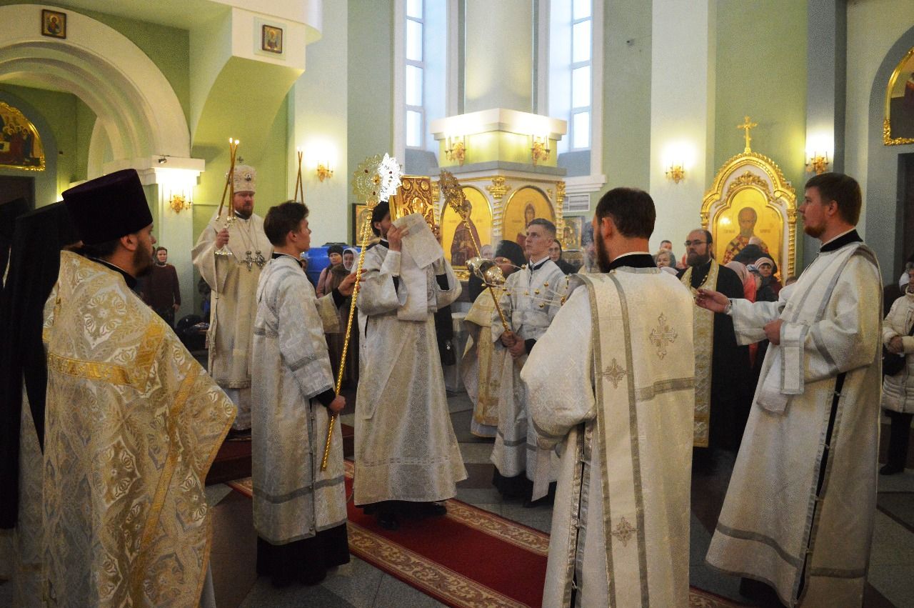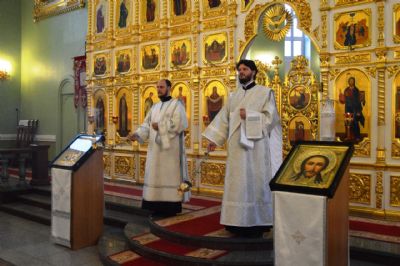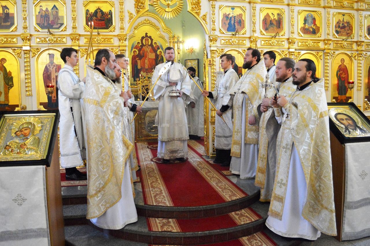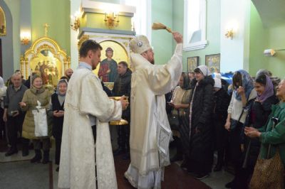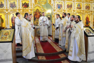 Его Высокопреосвященству сослужили ключарь Покровского кафедрального собора иеромонах Иоанн (Костин), игумен Антоний (Каменчук), игумен Тихон (Иршенко), протоиерей Игорь Шевчук, иерей Владимир Плотников.