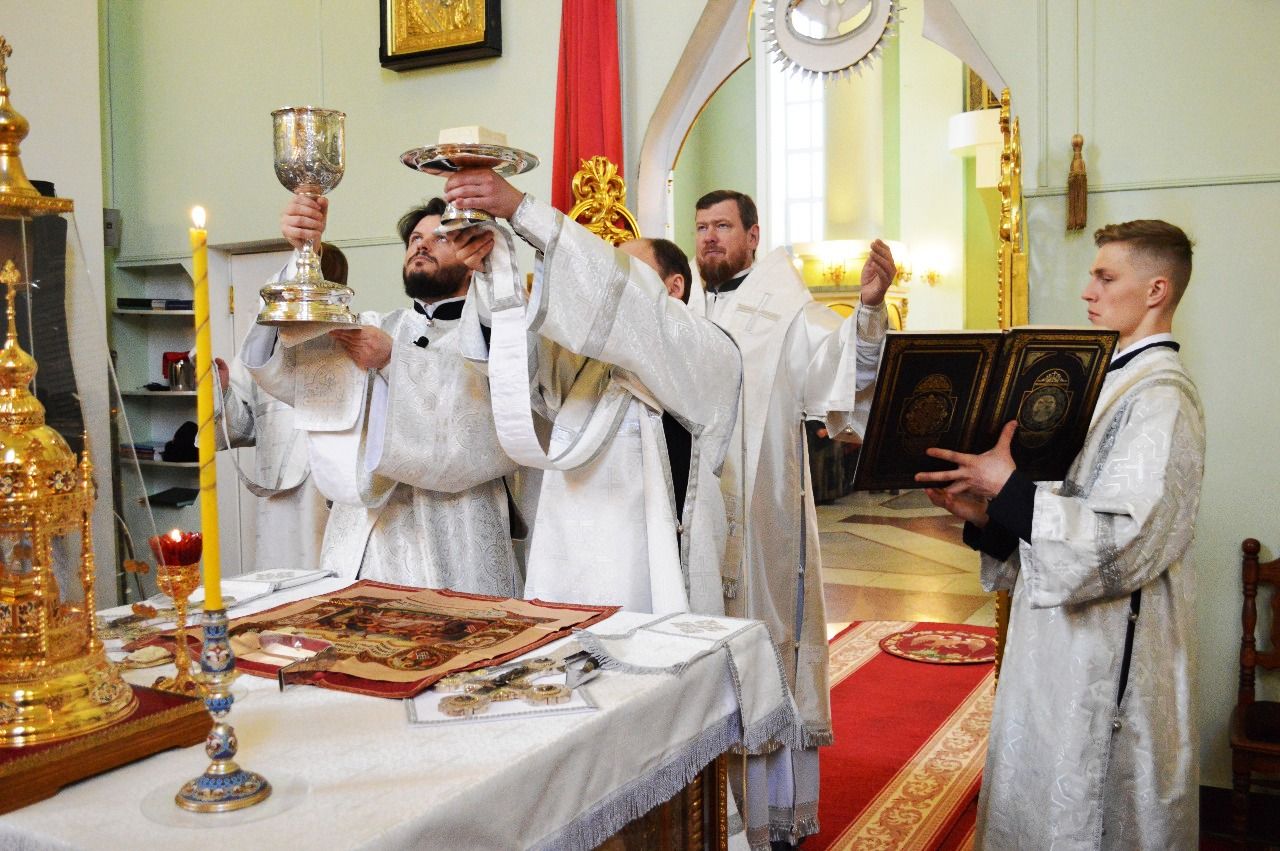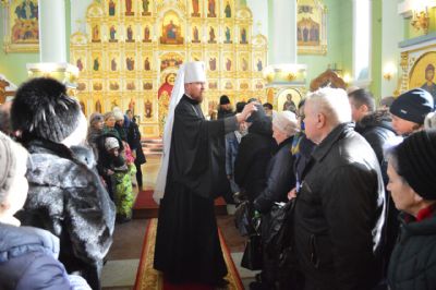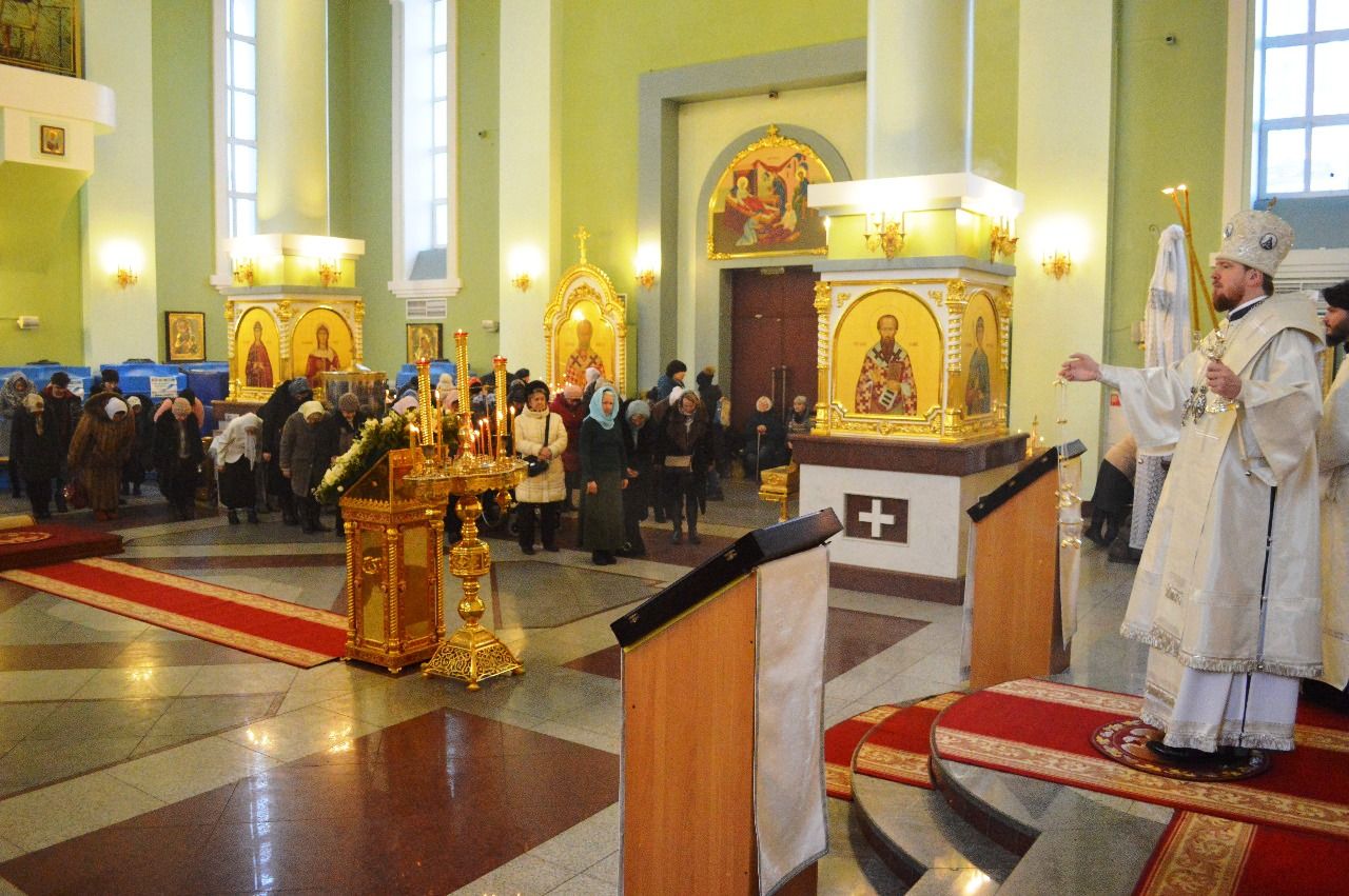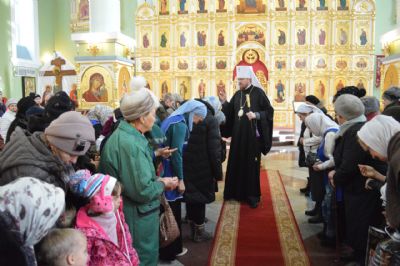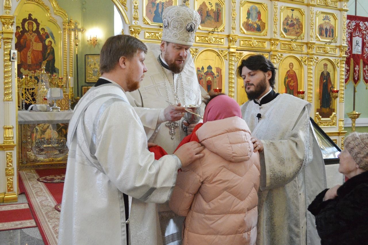 Его Высокопреосвященству сослужили ключарь Покровского кафедрального собора иеромонах Иоанн (Костин), игумен Антоний (Каменчук), игумен Тихон (Иршенко), протоиерей Игорь Шевчук, иерей Владимир Плотников.