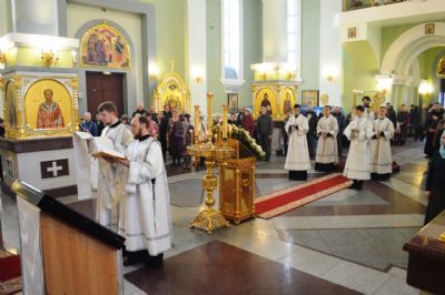 Богослужебные песнопения исполнил Архиерейский хор Покровского кафедрального собора под управлением регента Людмилы Макаренко.