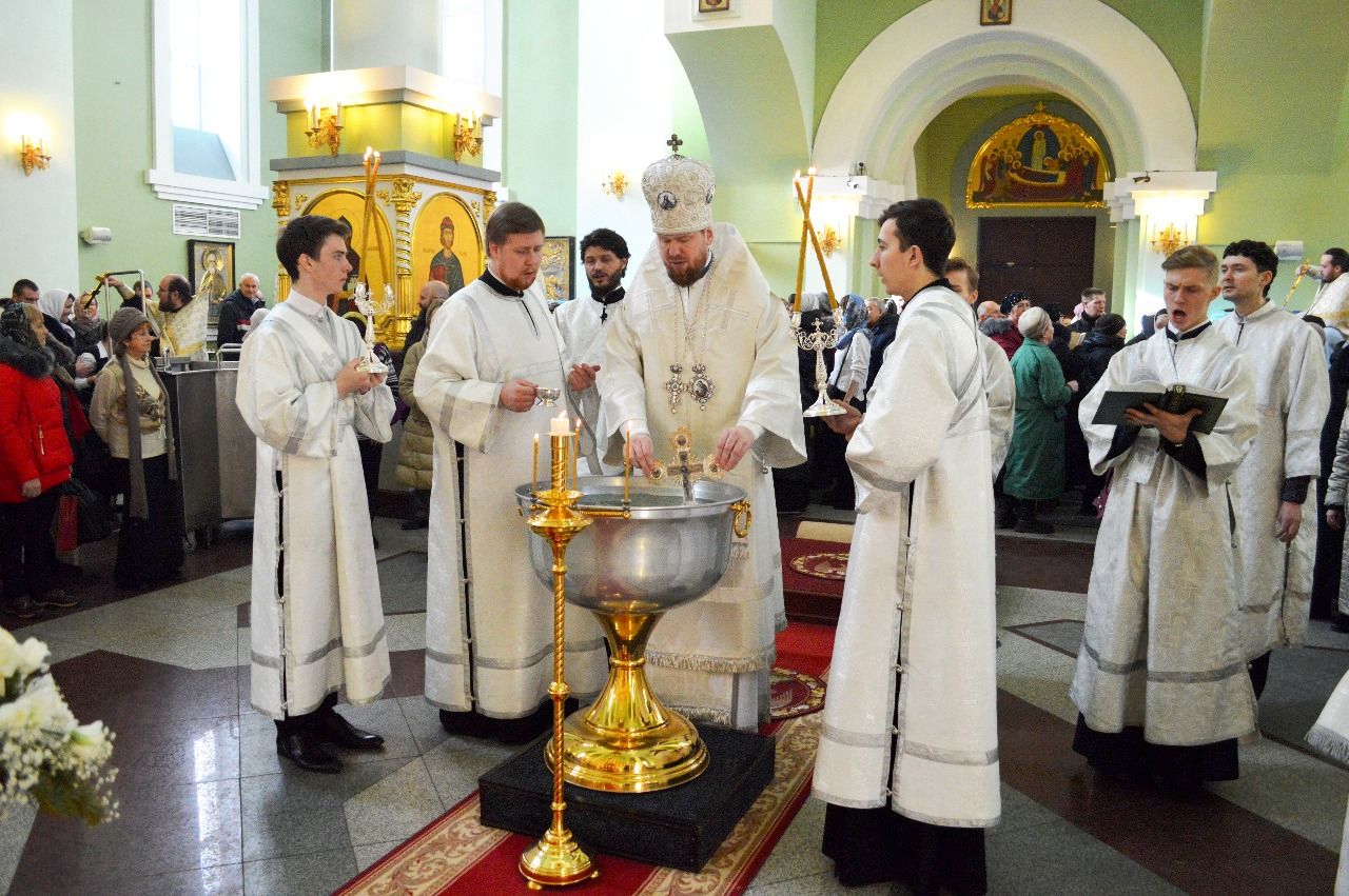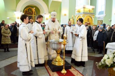 По окончании Божественной литургии митрополит Владимир с сослужащим ему духовенством совершил великую вечерню и чин великого освящения воды. После освящения владыка обратился к молящимся с архипастырским словом о духовном значении праздника.