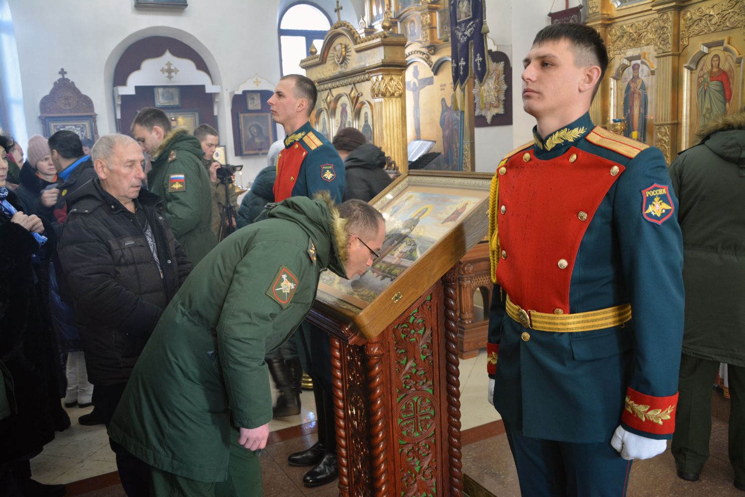 1 февраля все подразделения Уссурийского гарнизона, имеющие непосредственное отношения к материально-техническому обеспечению, имели возможность помолиться у святыни и ознакомиться с историей иконы, жизнеописанием небесного покровителя МТО. Порядка 350 военнослужащих посетили в этот день храм, где перед святым образом был совершен водосвятный молебен.