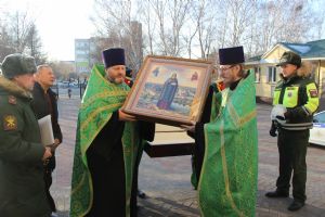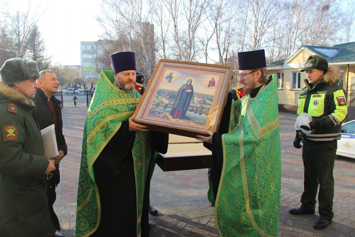 В 14.00 состоялась торжественная передача иконы военнослужащим Хабаровска, куда она и отправилась в сопровождении кортежа сотрудников военной автоинспекции.