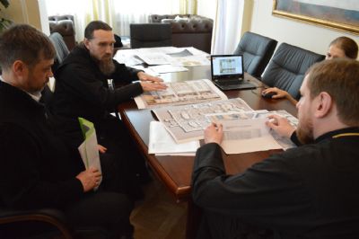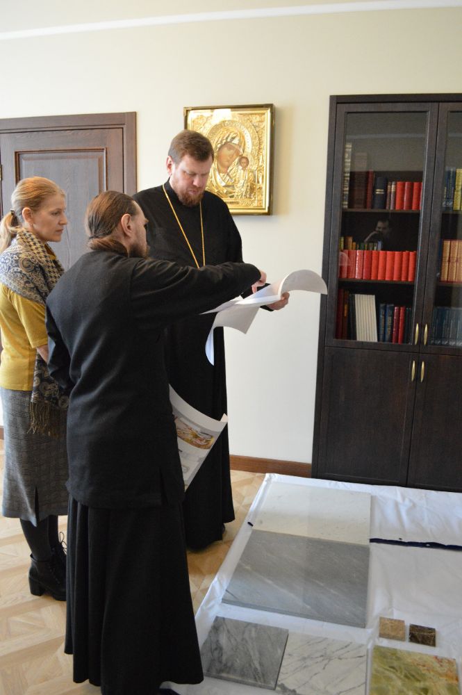 В ходе встречи участники рассмотрели несколько вариантов эскизных проектов, а также обсудили возможность использования натурального камня для отделки стен и пола собора.