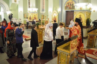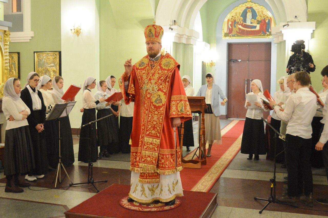 Богослужебные песнопения исполнил Митрополичий хор Покровского кафедрального собора под управлением регента Елены Левада.