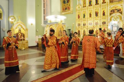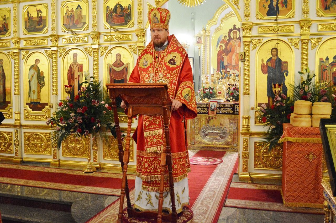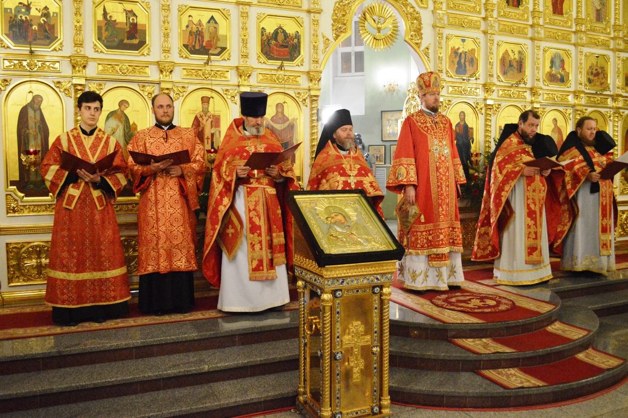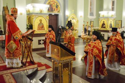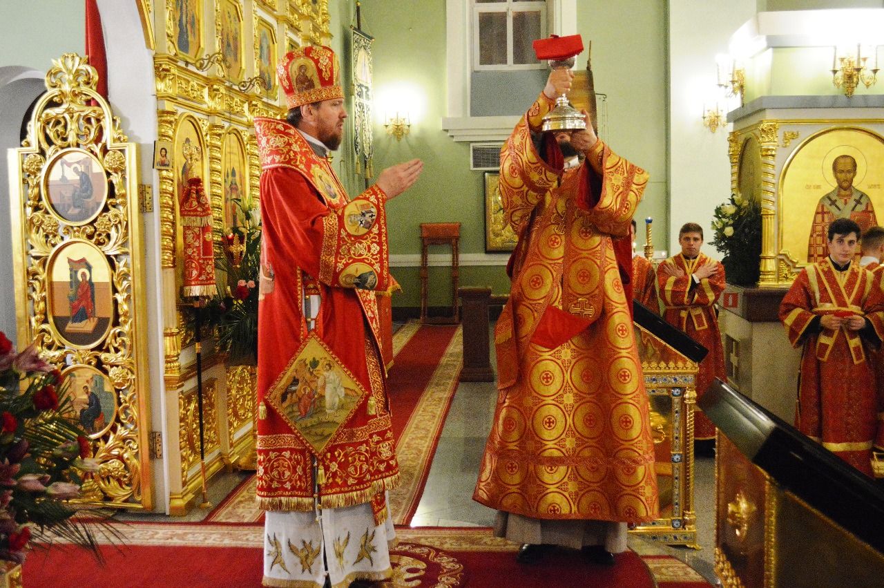 Его Высокопреосвященству сослужили ключарь собора иеромонах Иоанн (Костин), игумен Антоний (Каменчук), игумен Тихон (Иршенко), протоиерей Игорь Шевчук.