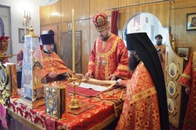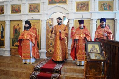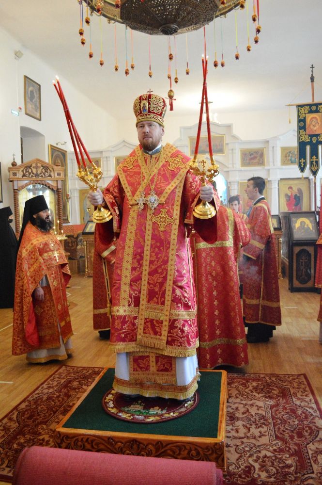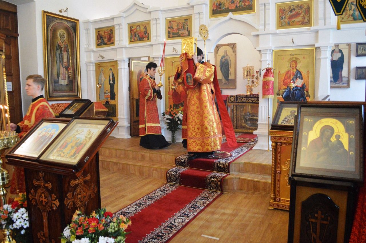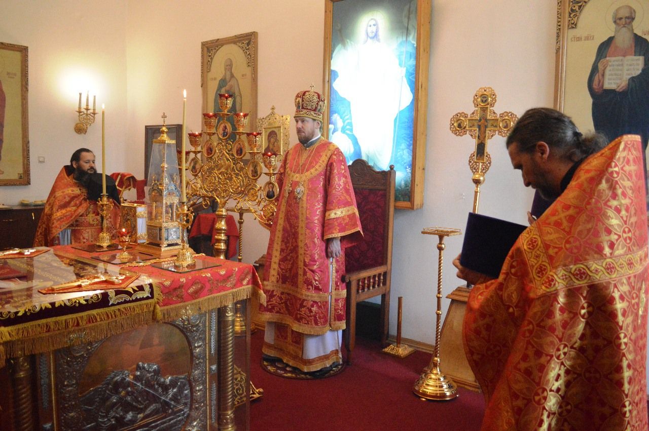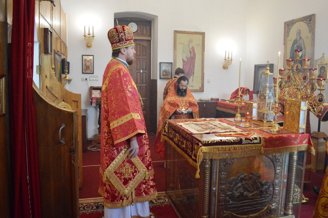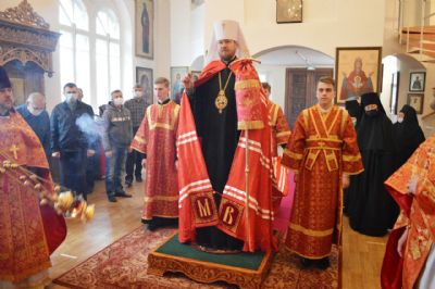 Его Высокопреосвященству сослужили старший священник монастырского храма иерей Вадим Маишев, иеромонах Иннокентий (Корчага), иерей Игорь Спицын.